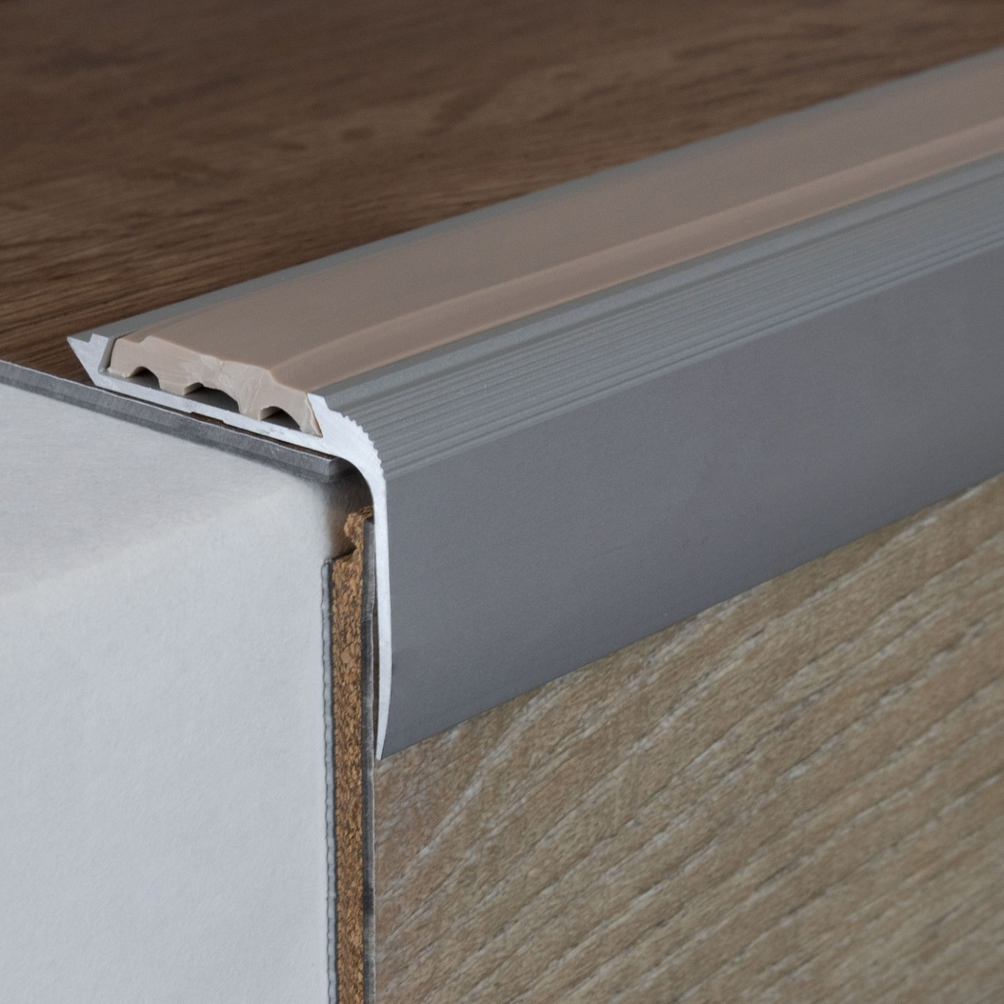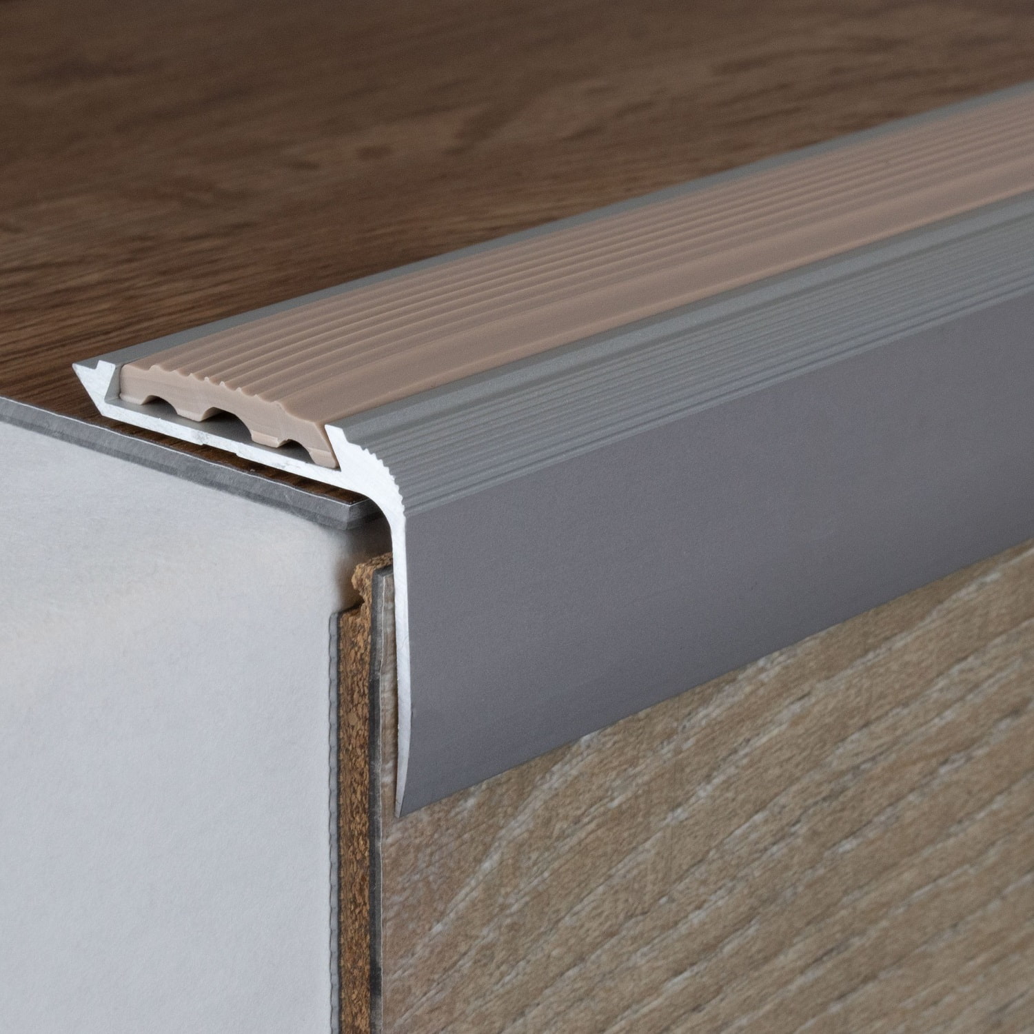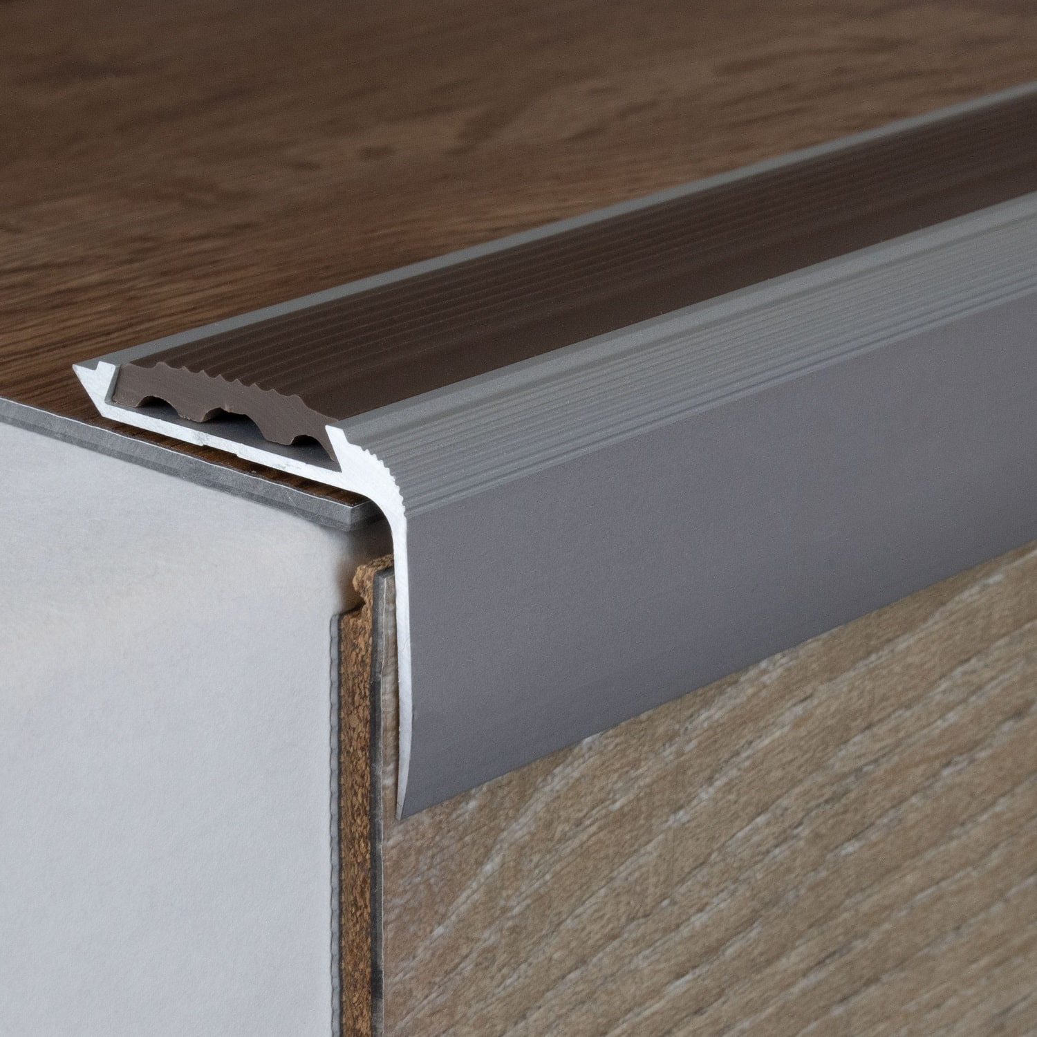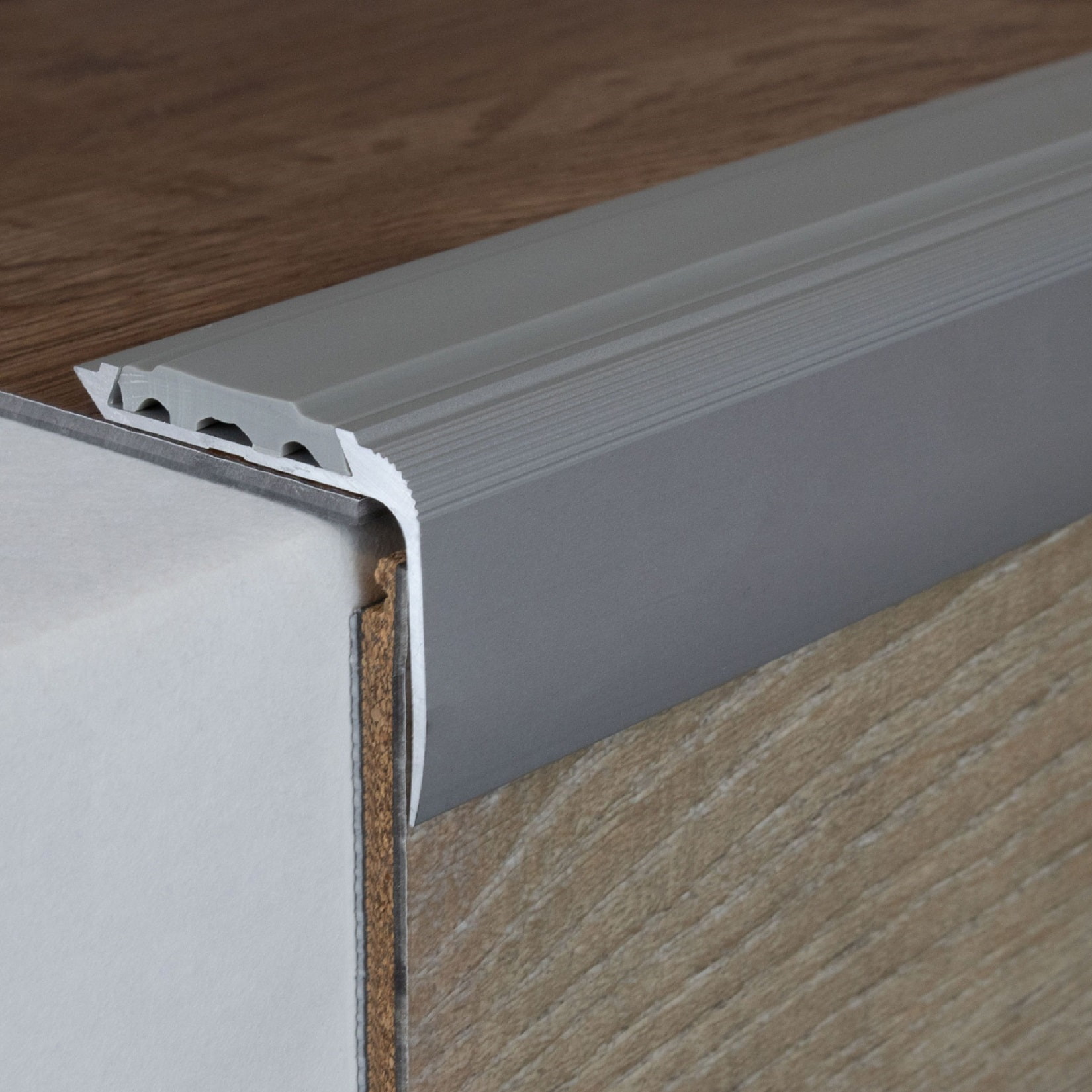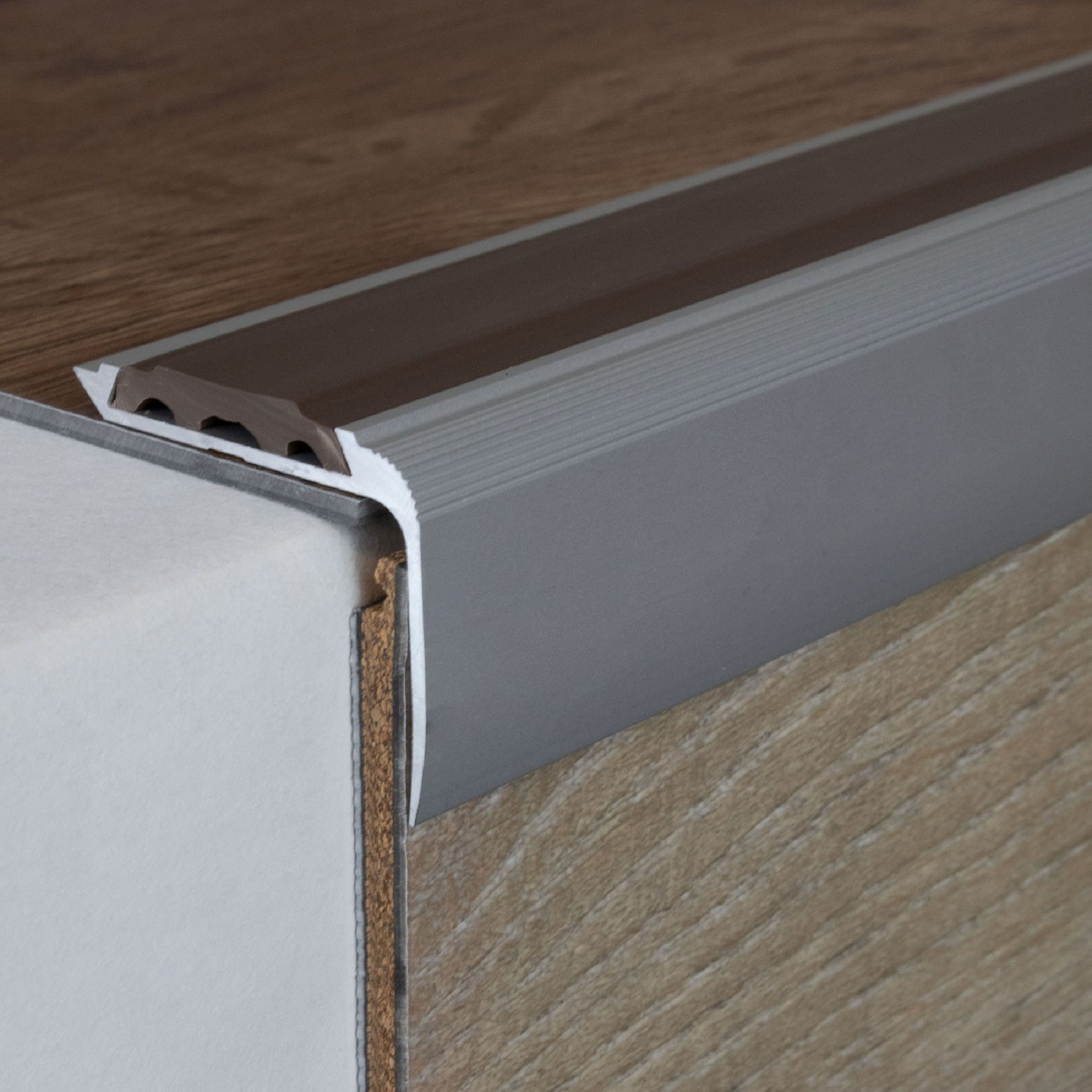 Nota sobre el contenido del envío: Los perfiles de cantonera para escaleras se suministran SIN insertos. Los insertos de PVC a juego se pueden pedir por separado en la pestaña "Accesorios".