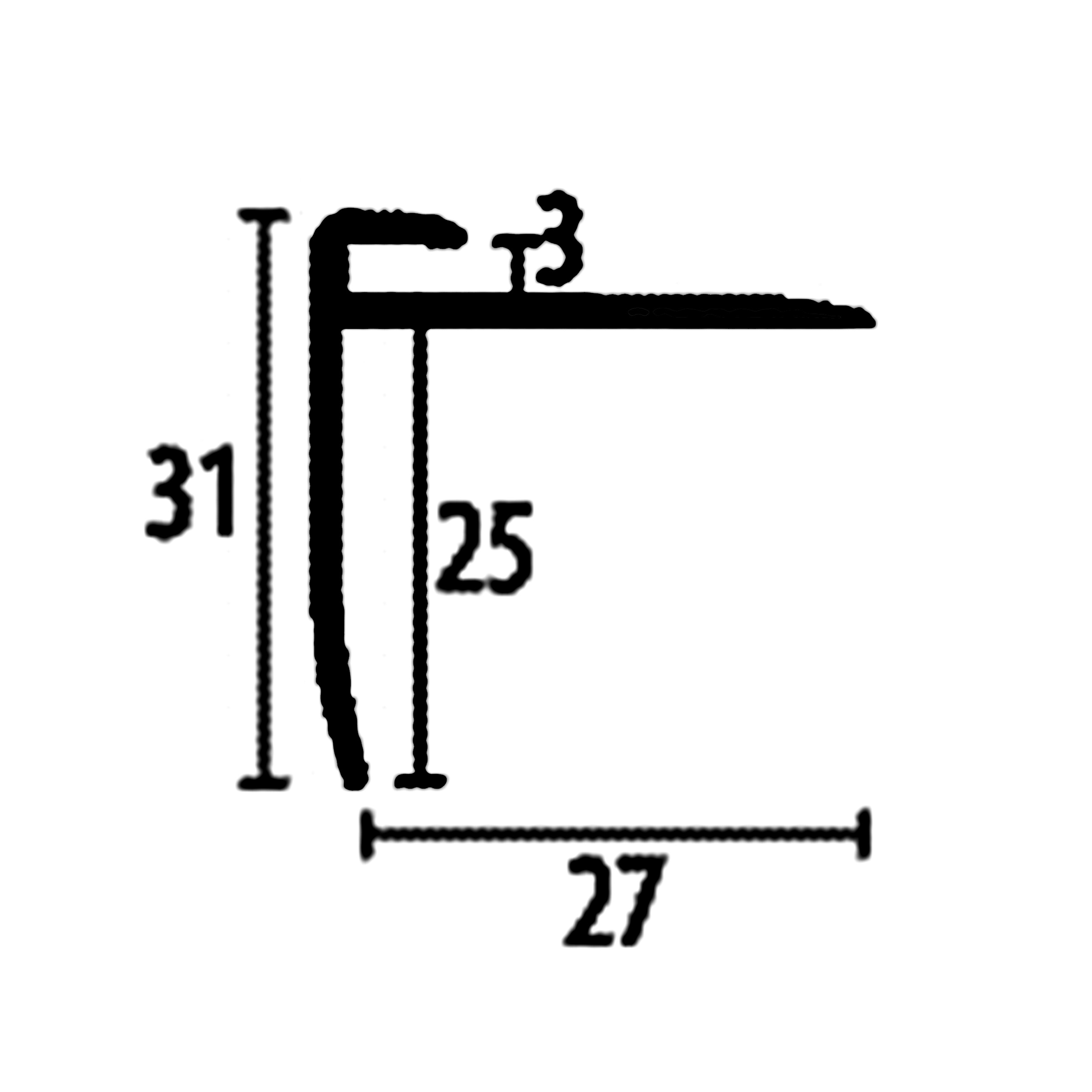 - TAMAÑO: El perfil angular con dimensiones 27 x 3 x 2500 mm tiene una altura de borde de 3 mm y crea un acabado limpio en el borde de la escalera.
