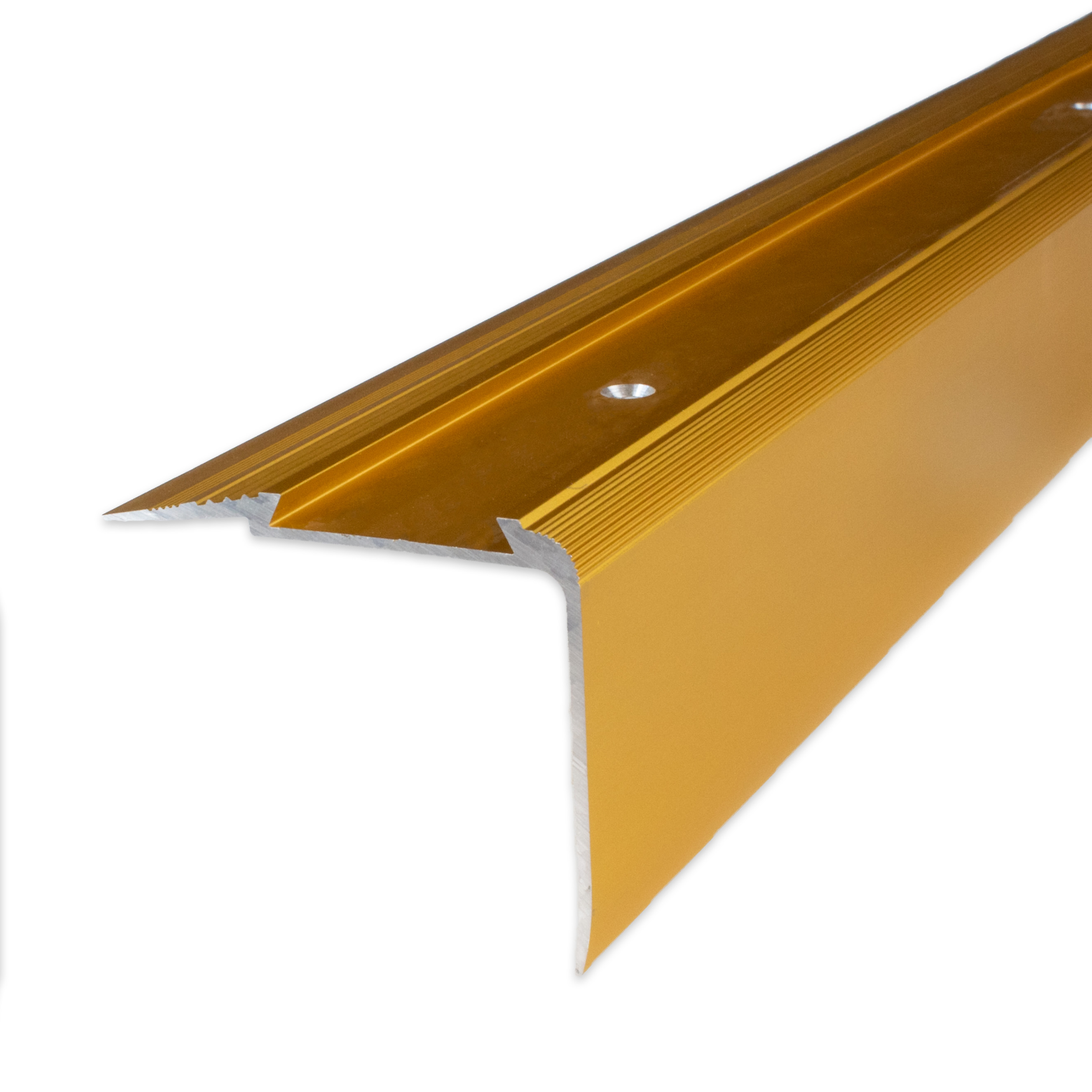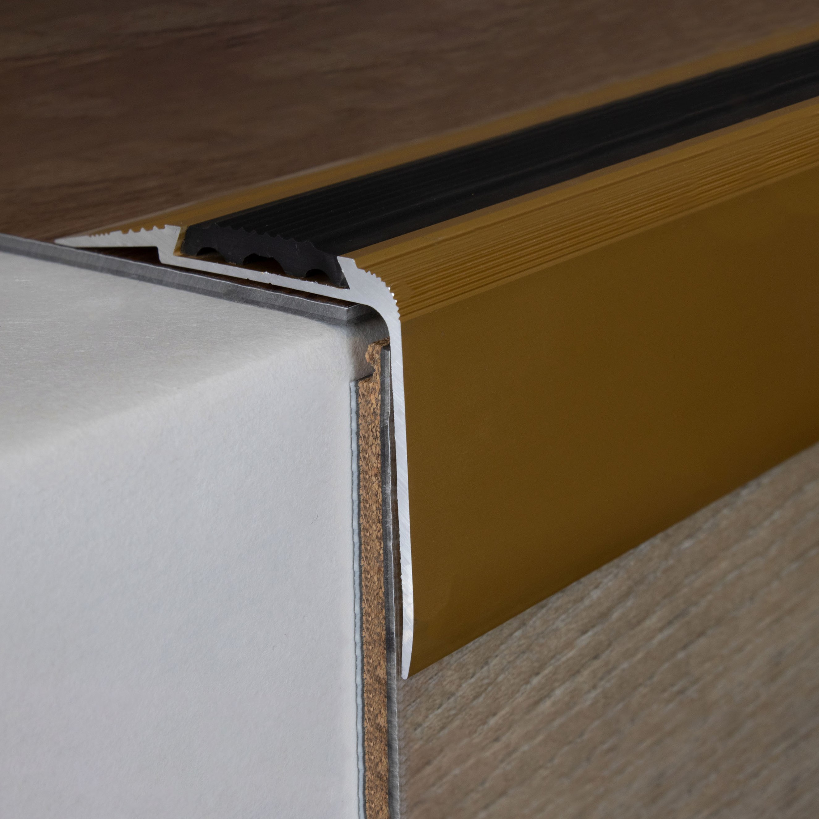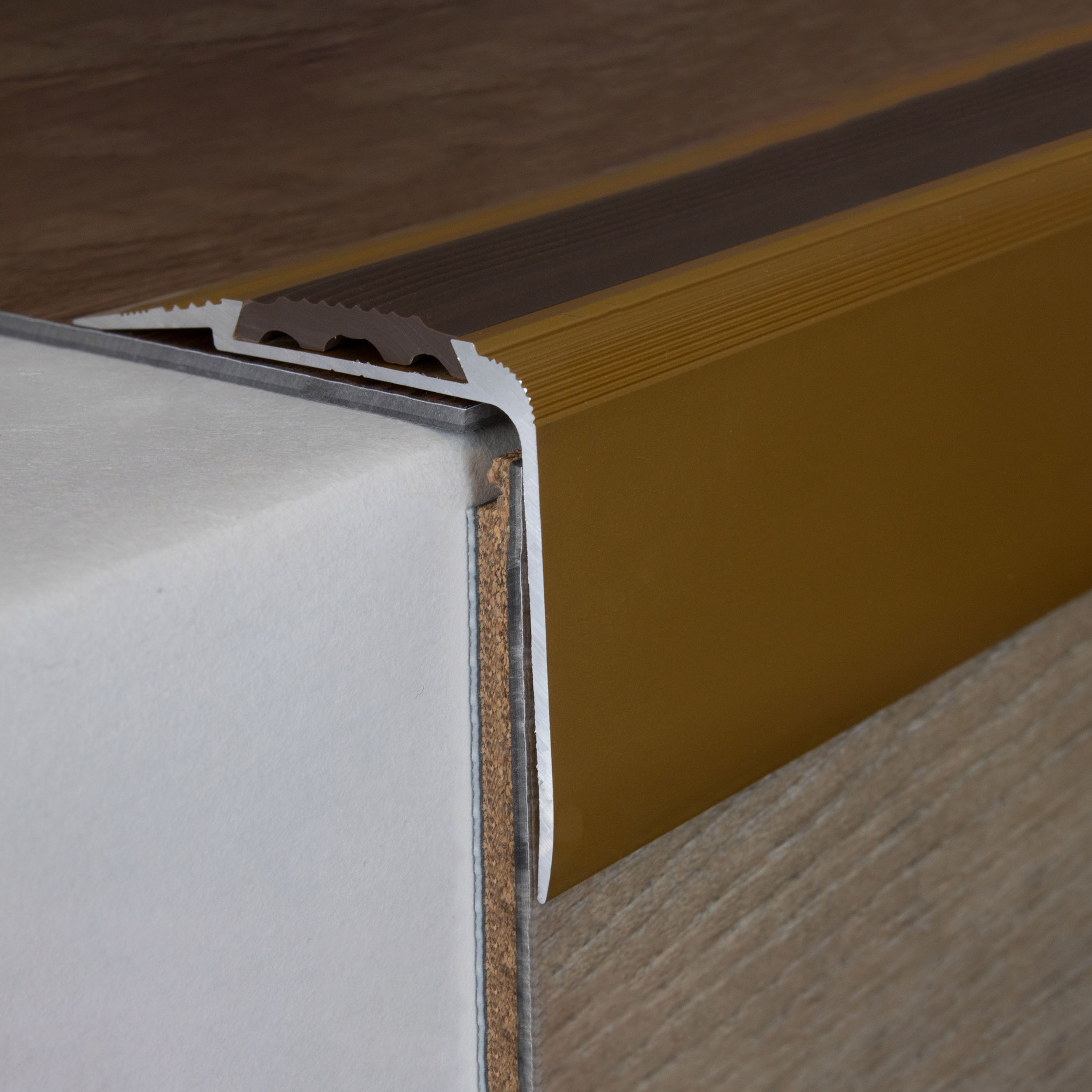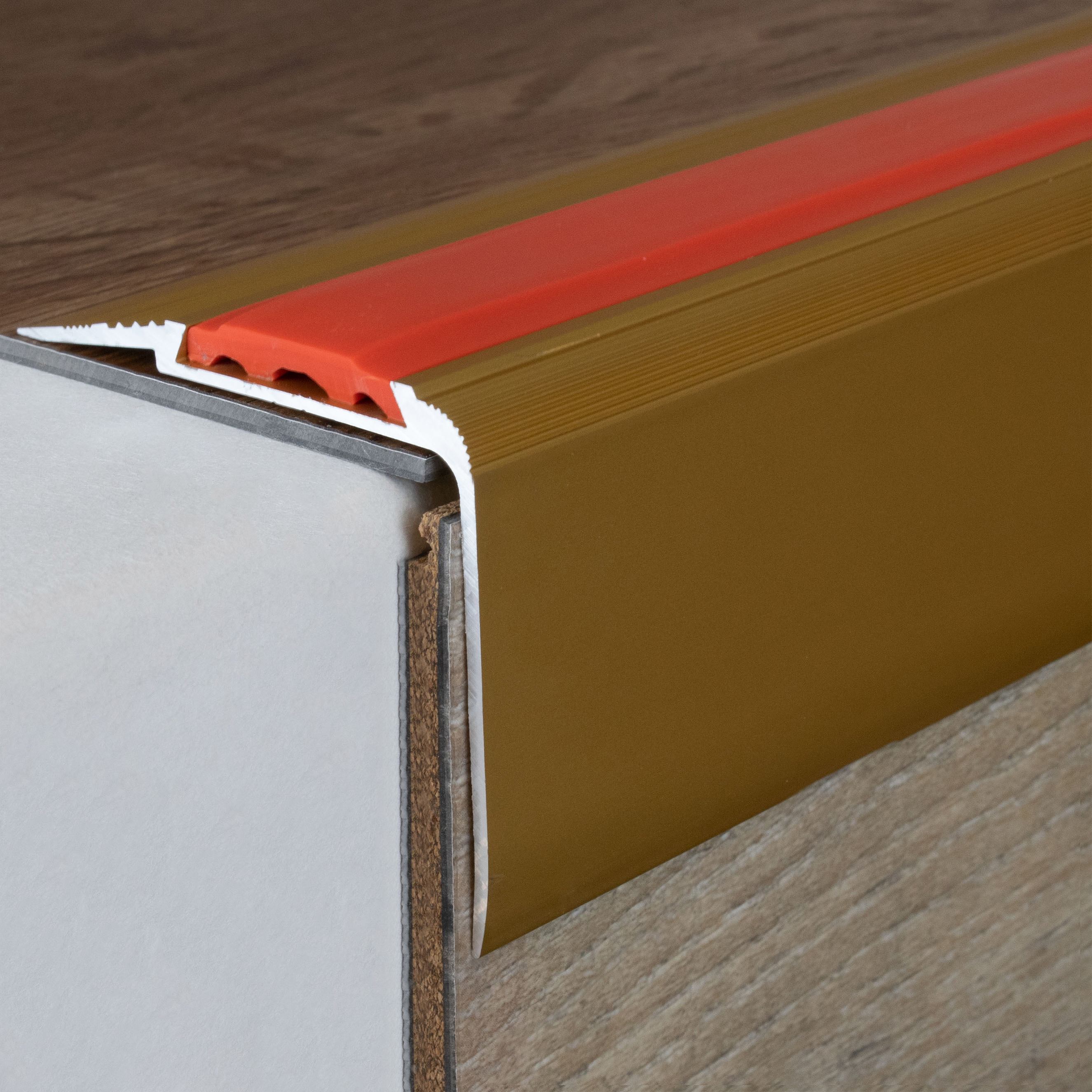 - COLOR: Color dorado. Gracias a su aspecto sencillo y moderno, este color armoniza con cualquier estilo de interiorismo, independientemente de si los suelos son oscuros o claros, o si las paredes son blancas o de colores. PROTECCIÓN CONTRA EL DESGASTE: Los perfiles de cantonera ofrecen una protección eficaz para los bordes de las escaleras. Evitan marcas de desgaste y arañazos que pueden producirse por el uso habitual. APLICACIONES: Nuestros perfiles de esquina son aptos no solo para viviendas, sino también para edificios públicos, locales comerciales y complejos de oficinas. Se pueden utilizar en escalones de madera, hormigón o baldosas y se integran perfectamente en cualquier ambiente. Importante: Los perfiles de cantonera adhesivos no son aptos para edificios públicos. Para zonas de alto tránsito, recomendamos perfiles angulares de acero inoxidable.