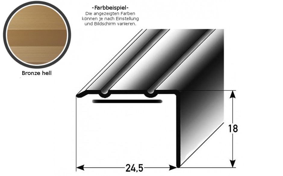 - COLOR: Bronce claro. Gracias a su aspecto sencillo y moderno, este color se integra armoniosamente en cualquier estilo de diseño de interiores, independientemente de si los suelos son oscuros o claros, o si las paredes son blancas o de colores. SUPERFICIE: La superficie acanalada garantiza un ascenso seguro por las escaleras.