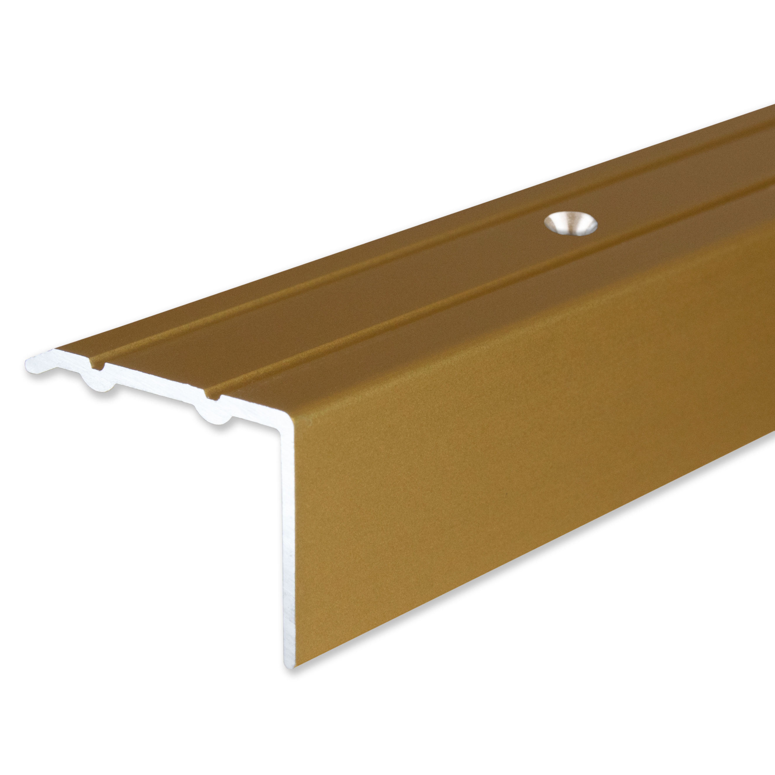 - COLOR: Color dorado. Gracias a su aspecto sencillo y moderno, este color se integra armoniosamente en cualquier estilo de diseño de interiores, independientemente de si los suelos son oscuros o claros, o si las paredes son blancas o de colores. SUPERFICIE: La superficie acanalada garantiza un ascenso seguro por las escaleras.