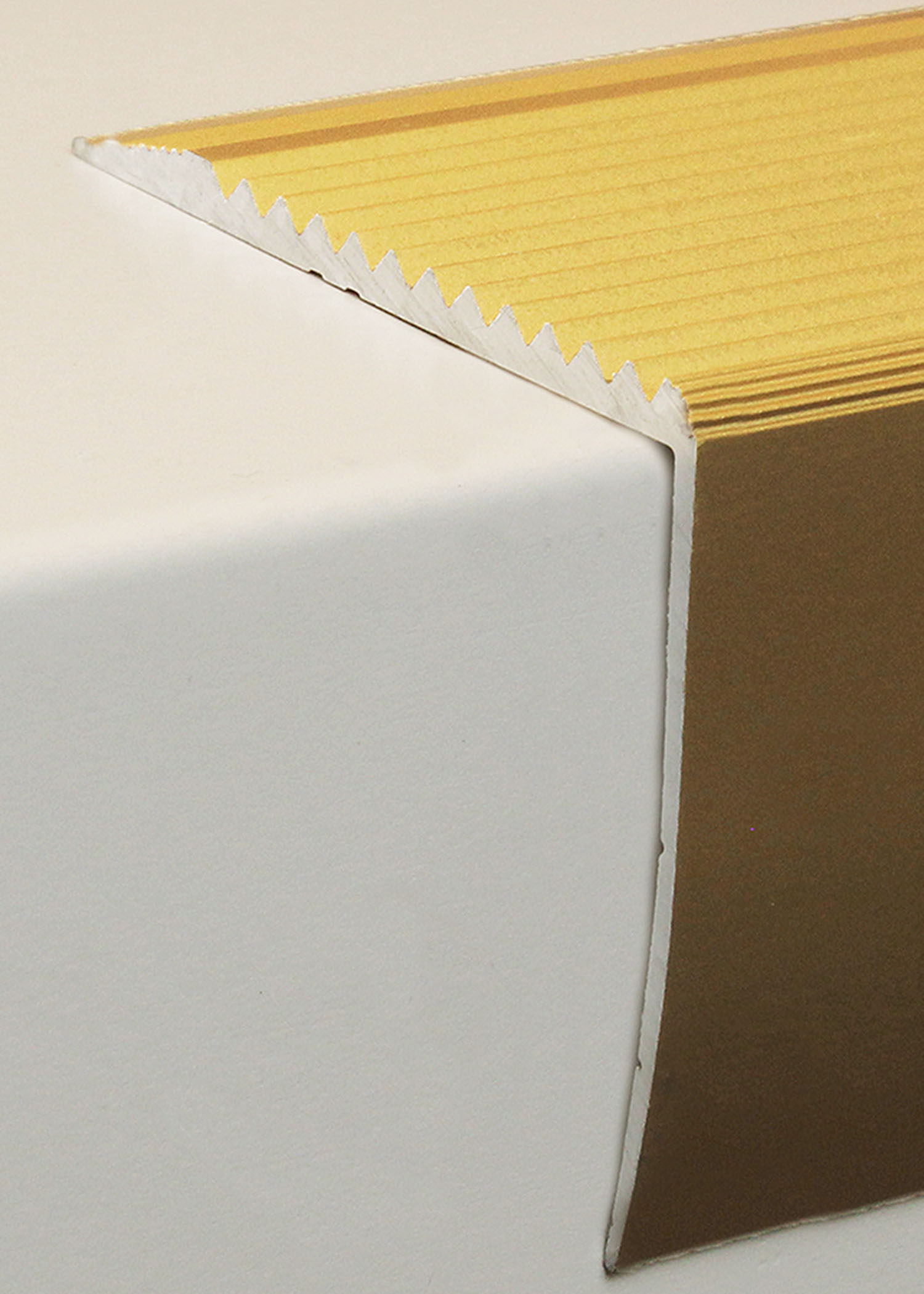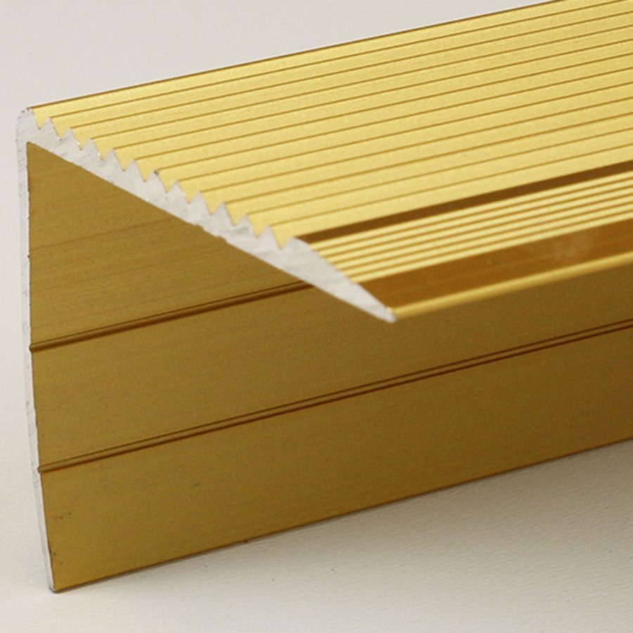 - TAMAÑO: El perfil angular de 50 x 42 x 1000 x 3 mm crea un acabado limpio en el borde de la escalera. El perfil tiene un grosor de 3 mm. MATERIAL: La tira está fabricada en aluminio de alta calidad y se caracteriza por su robustez, resistencia a la corrosión y durabilidad. COLOR: Dorado. Gracias a su aspecto sencillo y moderno, este color se integra armoniosamente en cualquier estilo de diseño de interiores, ya sean suelos oscuros o claros, paredes blancas o de color. SUPERFICIE: La superficie acanalada garantiza un ascenso seguro por las escaleras.