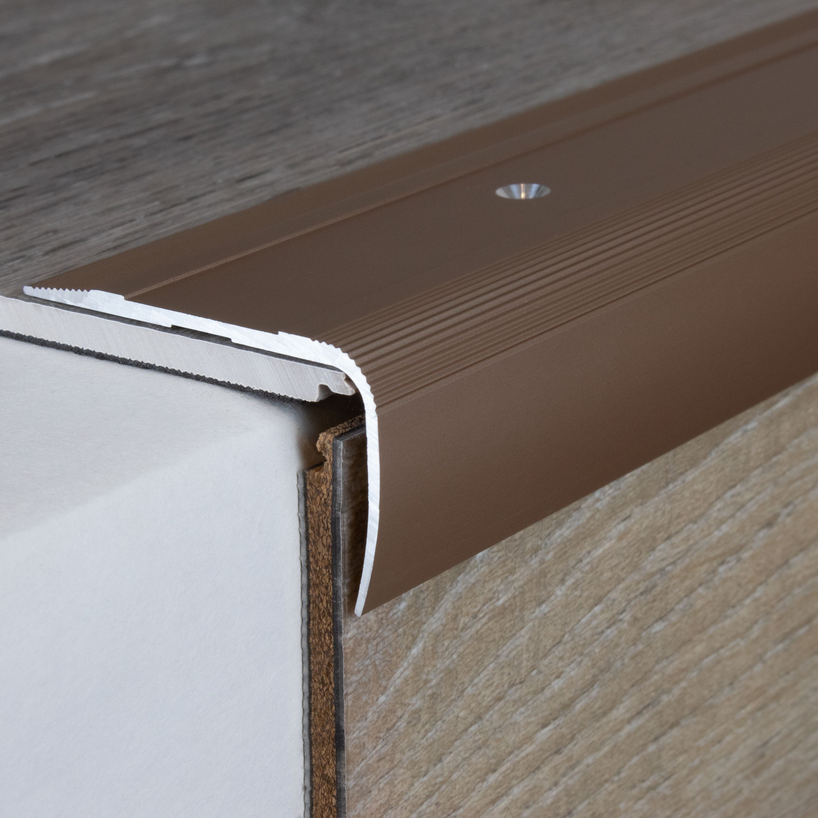 - COLOR: Bronce claro. Gracias a su aspecto sencillo y moderno, este color armoniza con cualquier estilo de interiorismo, independientemente de si los suelos son oscuros o claros, o si las paredes son blancas o de colores. PROTECCIÓN CONTRA EL DESGASTE: Los perfiles de cantonera ofrecen una protección eficaz para los bordes de las escaleras. Evitan marcas de desgaste y arañazos que pueden producirse por el uso habitual. APLICACIONES: Nuestros perfiles de esquina son aptos no solo para viviendas, sino también para edificios públicos, locales comerciales y complejos de oficinas. Se pueden utilizar en escalones de madera, hormigón o baldosas y se integran perfectamente en cualquier ambiente. Importante: Los perfiles de cantonera adhesivos no son aptos para edificios públicos. Para zonas de alto tránsito, recomendamos perfiles angulares de acero inoxidable.