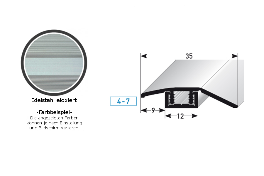 Perfiles de altura y ajuste Auer Underwood B, altura de borde de 35 mm, de 4 a 7 mm, aluminio anodizado