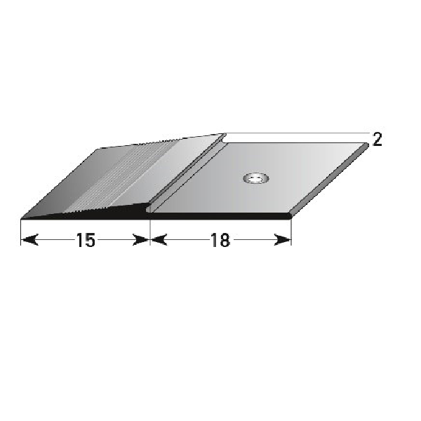 - DIMENSIONES: El perfil de nivelación, con unas dimensiones de 33 x 2 x 1000 mm, tiene una altura de borde de 2 mm.
