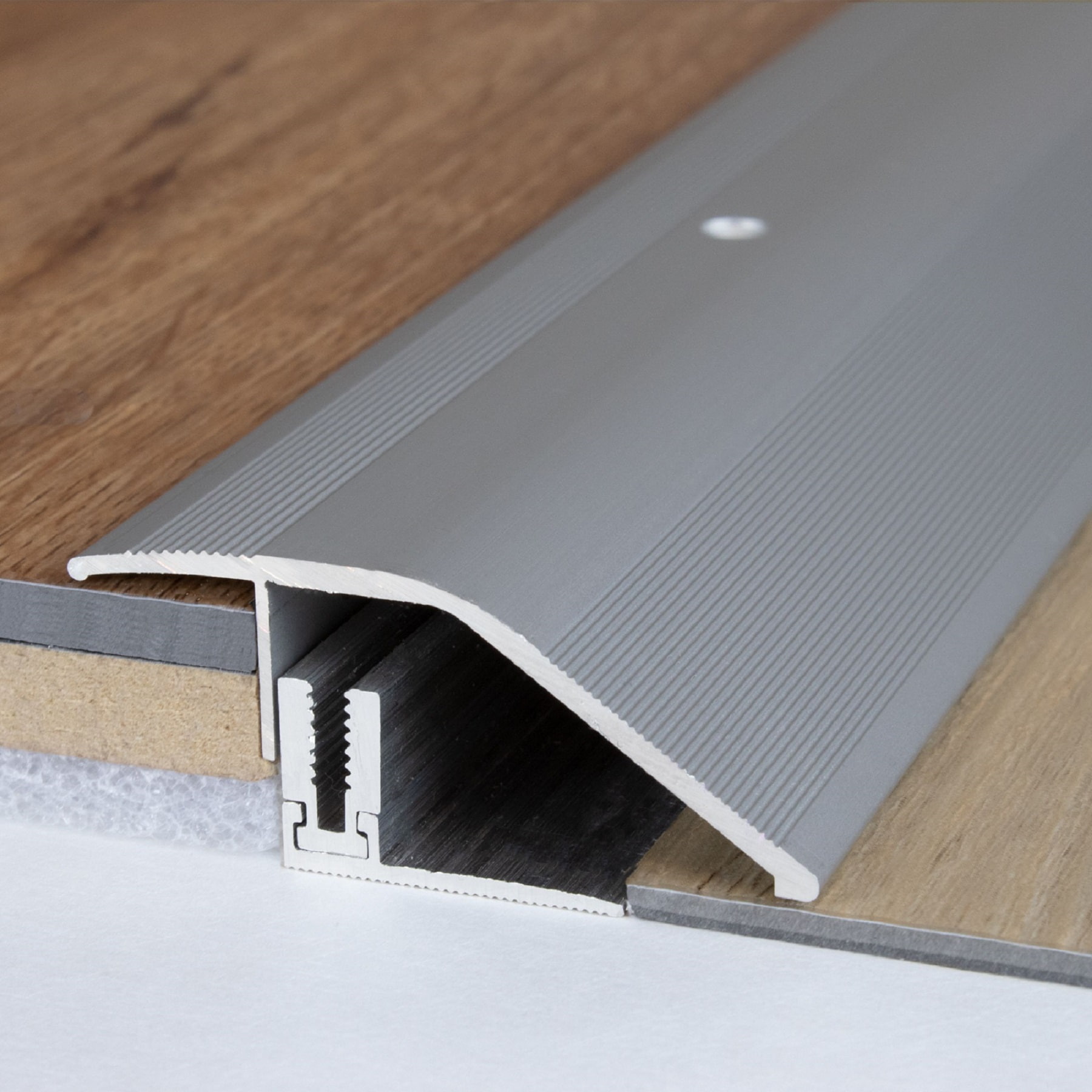 APLICACIÓN: Ya sea para la transición de parquet a baldosas, de laminado a moqueta o de vinilo a madera, nuestros perfiles niveladores garantizan una transición perfecta entre revestimientos de suelo de diferentes alturas.