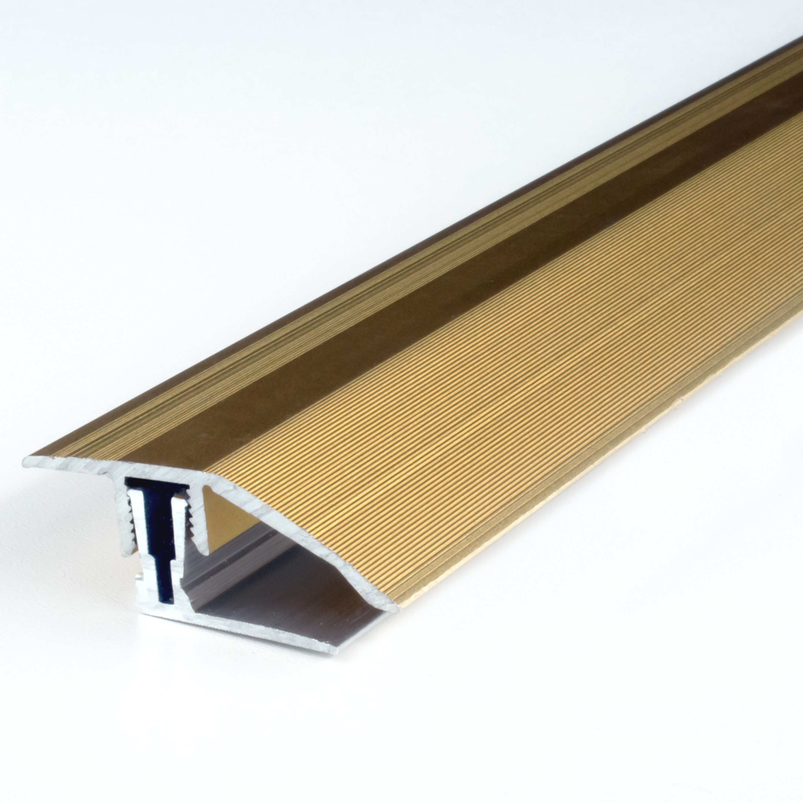 - COLOR: Color dorado. Gracias a su aspecto sencillo y moderno, este color se integra armoniosamente en cualquier estilo de diseño de interiores, independientemente de si los suelos son oscuros o claros. DISEÑO DE PERFIL ATRACTIVO: Sencillo, versátil y moderno. Este perfil de suelo es atemporal y un verdadero atractivo en cualquier habitación. APLICACIONES: Ya sea para la transición de parquet a baldosas, de laminado a moqueta o de vinilo a madera, nuestros perfiles de nivelación garantizan una transición perfecta entre revestimientos de suelo de diferentes alturas.