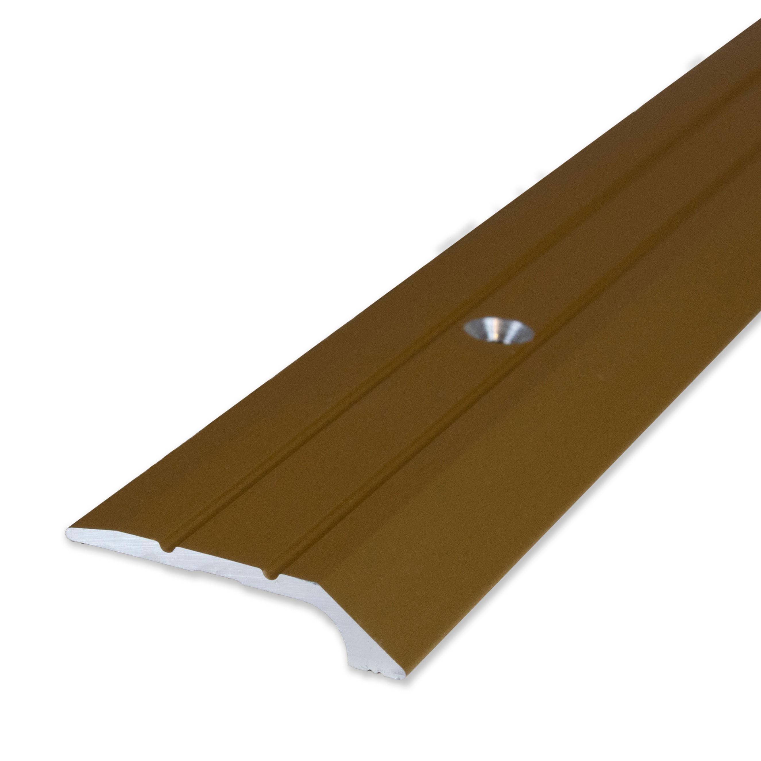 - COLOR: Color dorado. Gracias a su aspecto sencillo y moderno, este color se integra armoniosamente en cualquier estilo de diseño de interiores, independientemente de si los suelos son oscuros o claros, o si las paredes son blancas o de colores. SUPERFICIE: El perfil de borde tiene una textura superficial agradablemente suave. DISEÑO DE PERFIL APLICABLE: Sencillo, versátil y moderno. Este perfil de suelo es atemporal y un verdadero atractivo en cualquier habitación. APLICACIÓN: Los perfiles de borde protegen de forma ideal los cantos del suelo contra daños y proporcionan un acabado limpio y profesional. CONTENIDO DEL PAQUETE: Se incluyen los tornillos y tacos necesarios. INSTALACIÓN SENCILLA: La instalación de nuestros perfiles de borde es rápida y sencilla. No se requieren herramientas especiales ni técnicas de bricolaje complicadas. Los perfiles metálicos se pueden fijar fácilmente atornillando o pegando. Asegúrese de que la superficie esté nivelada y sea resistente. Para los perfiles de suelo autoadhesivos, la superficie debe estar seca, libre de polvo y grasa para garantizar una adhesión perfecta. En zonas de mucho tránsito, el perfil debe atornillarse y, además, encolarse. Para aumentar la capacidad de carga, recomendamos rellenar la cavidad entre el perfil metálico y el revestimiento del suelo con un material adhesivo. Aquí encontrará nuestras instrucciones de instalación para perfiles de suelo.