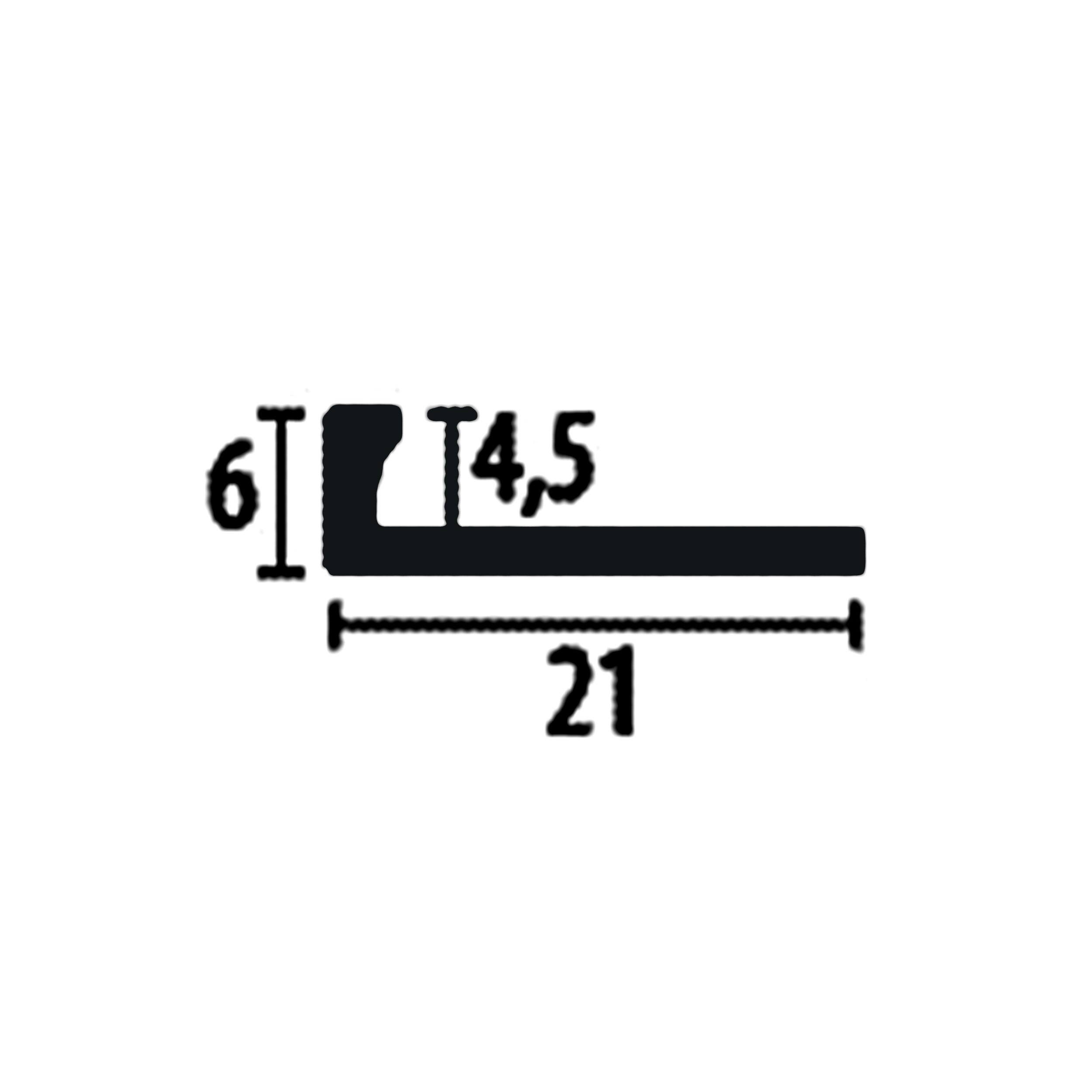 Perfiles de canto y acabado Küberit, 6 mm de alto, 21 mm de ancho, 2500 mm de largo, altura del canto: 4,5 mm, aluminio anodizado.