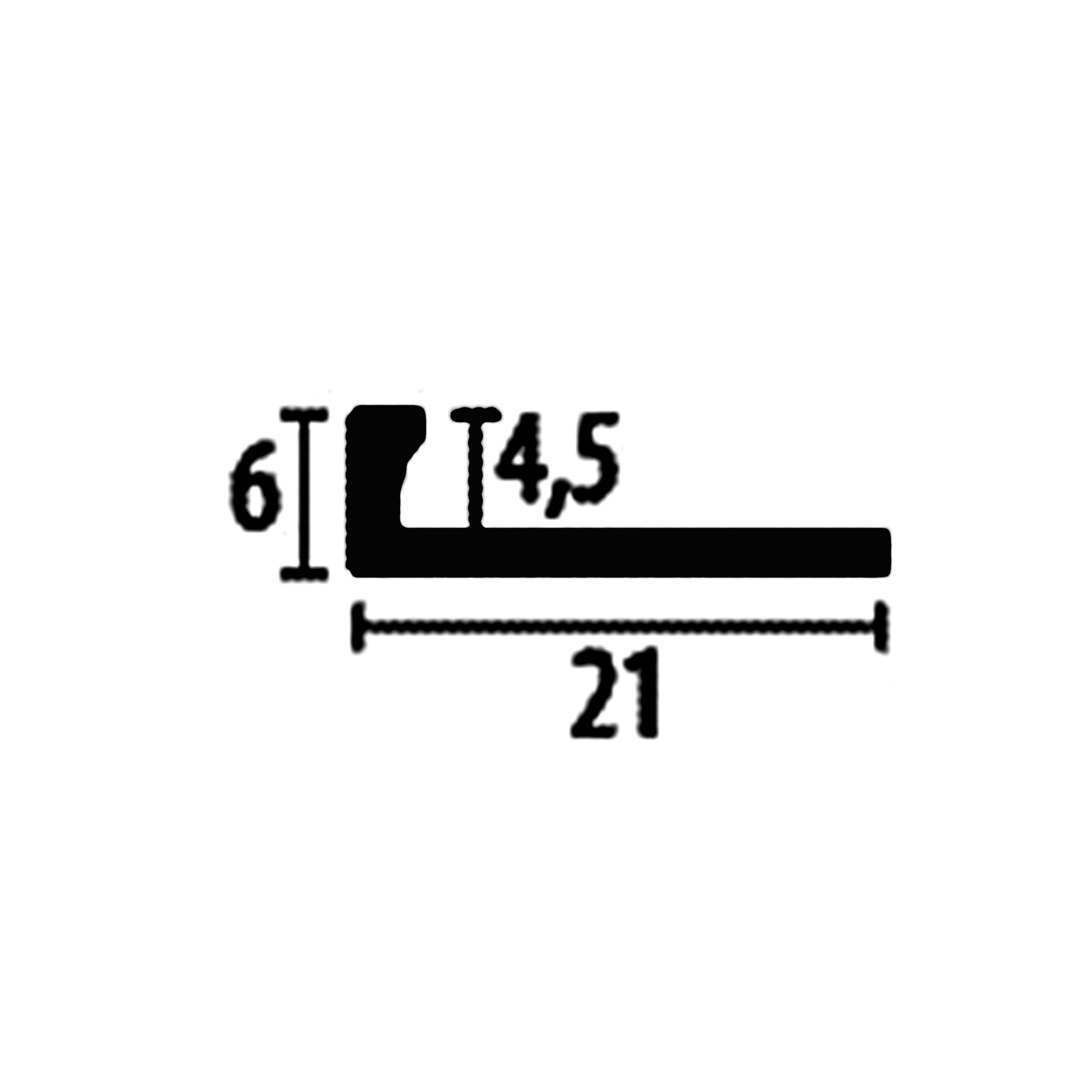Perfiles de canto y acabado Küberit, 6 mm de alto, 21 mm de ancho, 2500 mm de largo, altura del canto: 4,5 mm, aluminio anodizado.