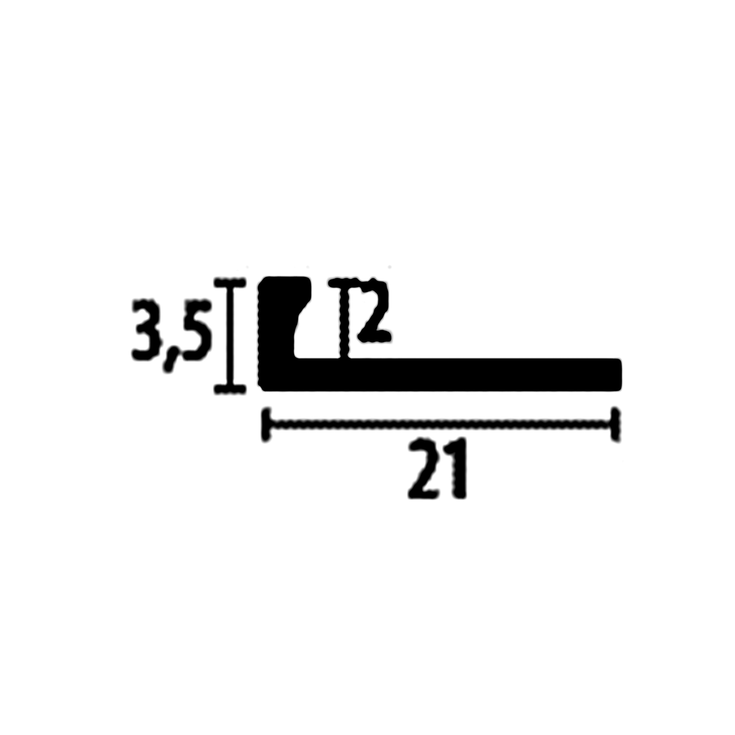 Perfiles de canto y acabado Küberit, altura 3,5 mm, ancho 21 mm, longitud 2500 mm, altura del canto 2 mm, aluminio anodizado
