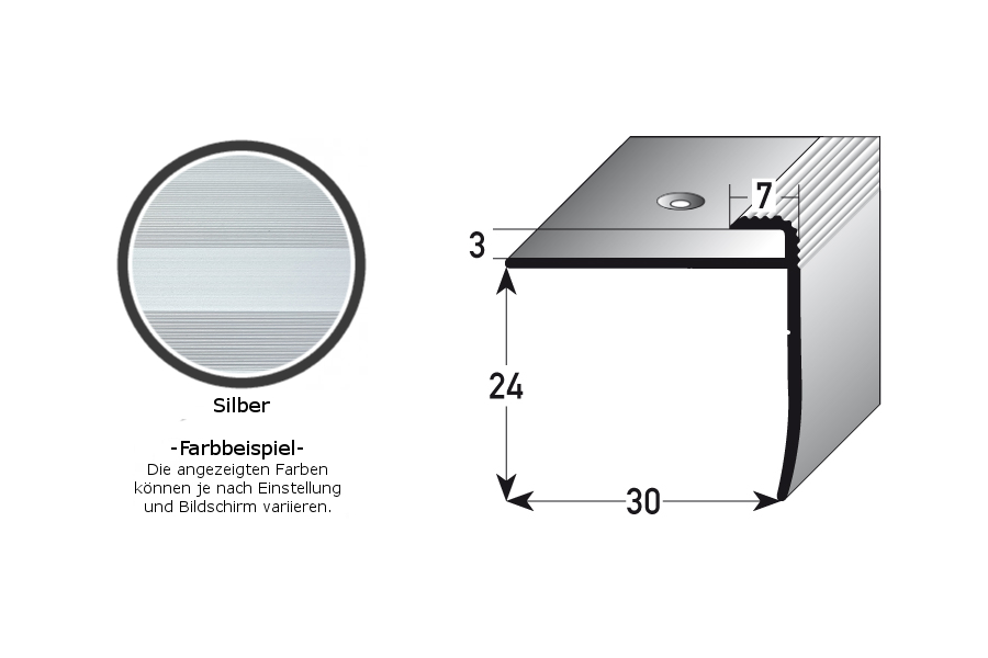 - COLOR: Plata. Gracias a su aspecto sencillo y moderno, este color se integra armoniosamente en cualquier estilo de diseño de interiores, independientemente de si los suelos son oscuros o claros, o si las paredes son blancas o de colores. SUPERFICIE: El perfil de borde tiene una textura superficial agradablemente suave.