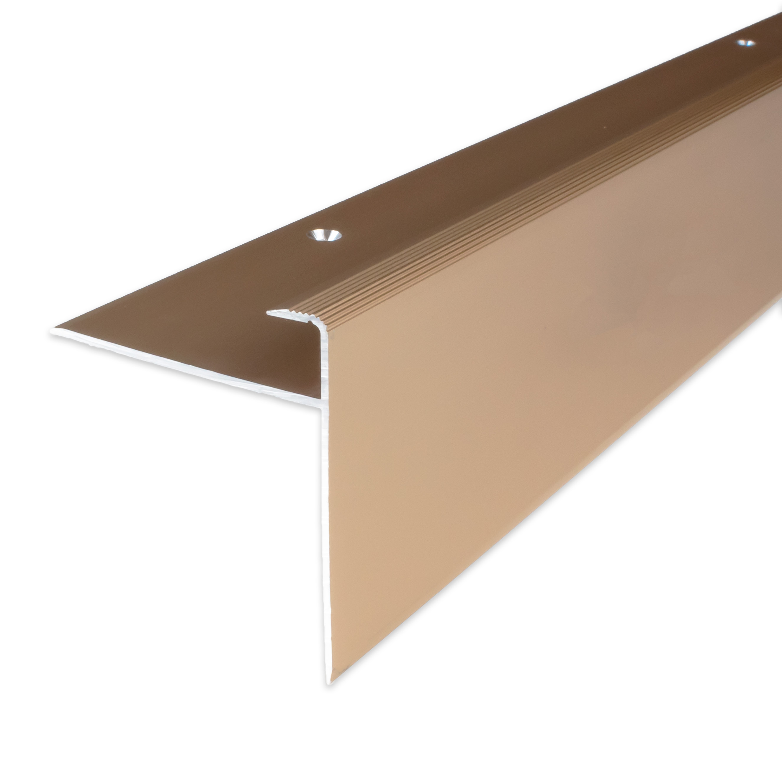 - COLOR: Bronce claro. Gracias a su aspecto sencillo y moderno, este color se integra armoniosamente en cualquier estilo de diseño de interiores, independientemente de si los suelos son oscuros o claros, o si las paredes son blancas o de colores. DISEÑO DE PERFIL ATRACTIVO: Sencillo, versátil y moderno. Este perfil de suelo es atemporal y un verdadero atractivo en cualquier habitación. APLICACIÓN: Los perfiles de borde protegen de forma ideal los cantos del suelo contra daños y proporcionan un acabado limpio y profesional. ACCESORIOS: Se incluyen los tornillos y tacos necesarios. SUPERFICIE: El perfil tiene una superficie ranurada.