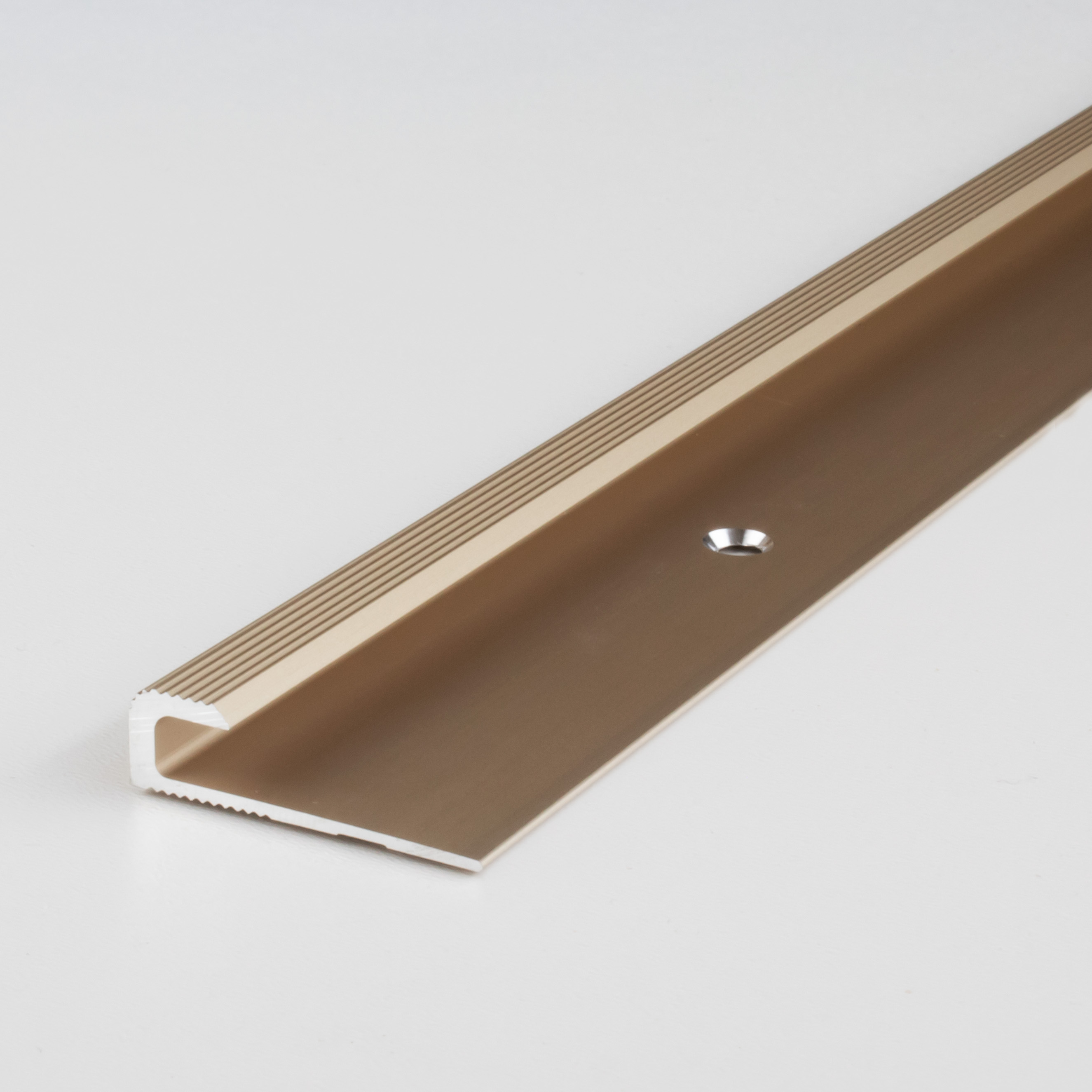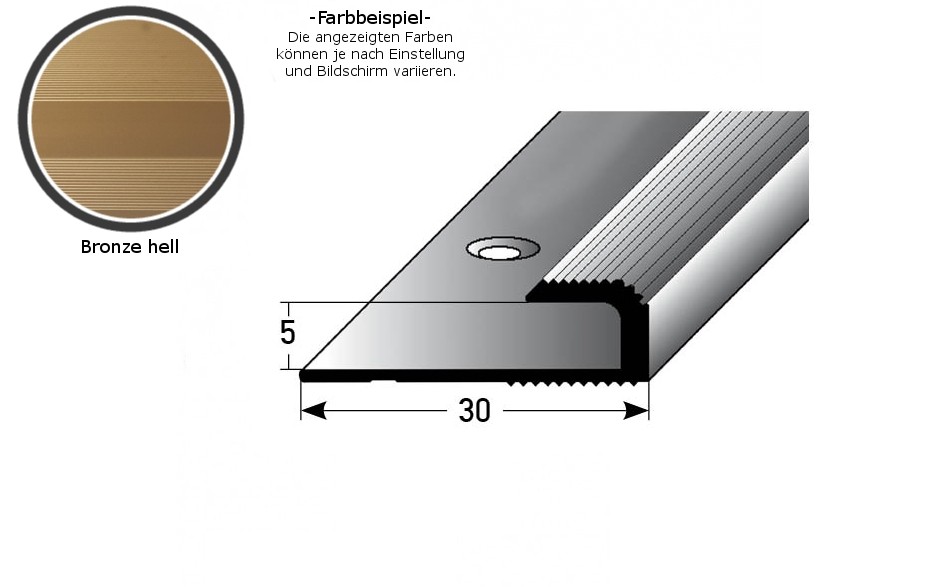 - COLOR: Bronce claro. Gracias a su aspecto sencillo y moderno, este color se integra armoniosamente en cualquier estilo de diseño de interiores, independientemente de si los suelos son oscuros o claros, o si las paredes son blancas o de colores. SUPERFICIE: El perfil de borde tiene una textura superficial agradablemente suave.