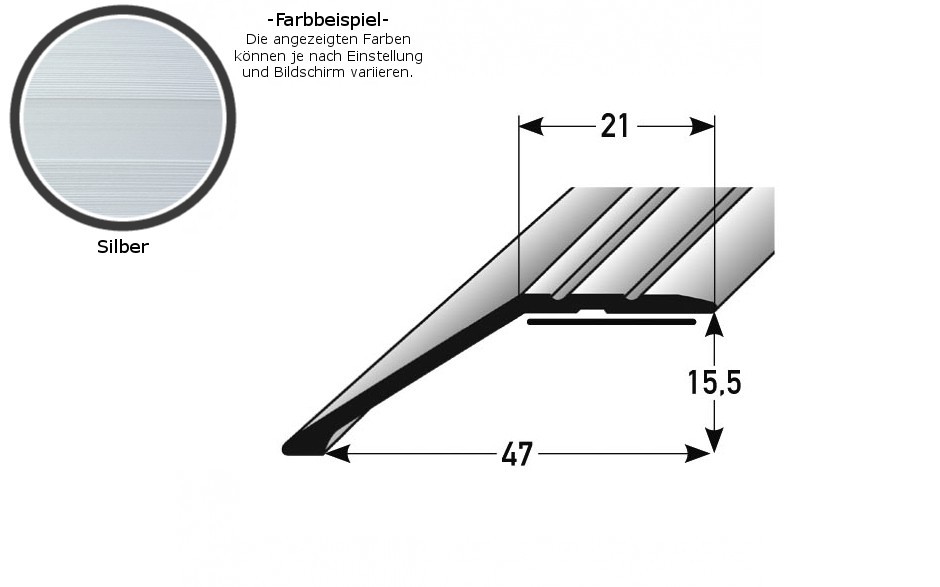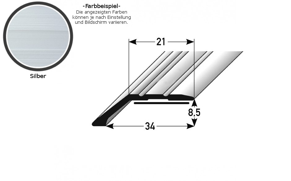 - COLOR: Plata. Gracias a su aspecto sencillo y moderno, este color se integra armoniosamente en cualquier estilo de diseño de interiores, independientemente de si los suelos son oscuros o claros, o si las paredes son blancas o de colores. SUPERFICIE: El perfil de borde tiene una textura superficial agradablemente suave.