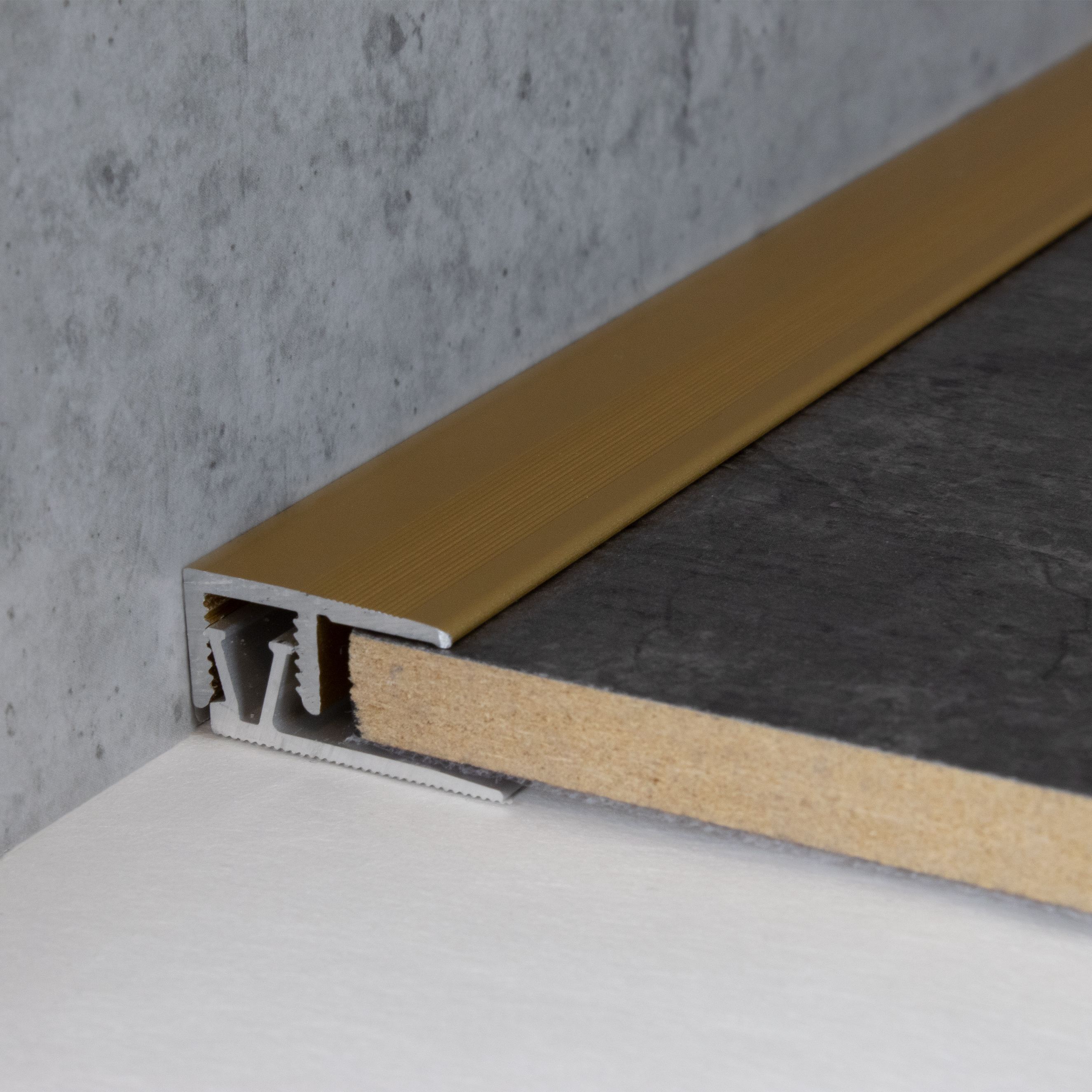 INSTALACIÓN SENCILLA: La instalación de nuestros perfiles de borde es rápida y sencilla. No se requieren herramientas especiales ni técnicas de bricolaje complicadas. Los perfiles metálicos se pueden fijar fácilmente atornillando o pegando. Asegúrese de que la superficie esté nivelada y sea resistente. Para los perfiles autoadhesivos, la superficie también debe estar seca, libre de polvo y grasa para lograr una adhesión óptima. En zonas de mucho tránsito, el perfil debe atornillarse y, además, encolarse. Para aumentar la capacidad de carga, recomendamos rellenar el espacio entre el perfil metálico y el revestimiento del suelo con un material adhesivo. Aquí encontrará nuestras instrucciones de instalación de perfiles para suelos.