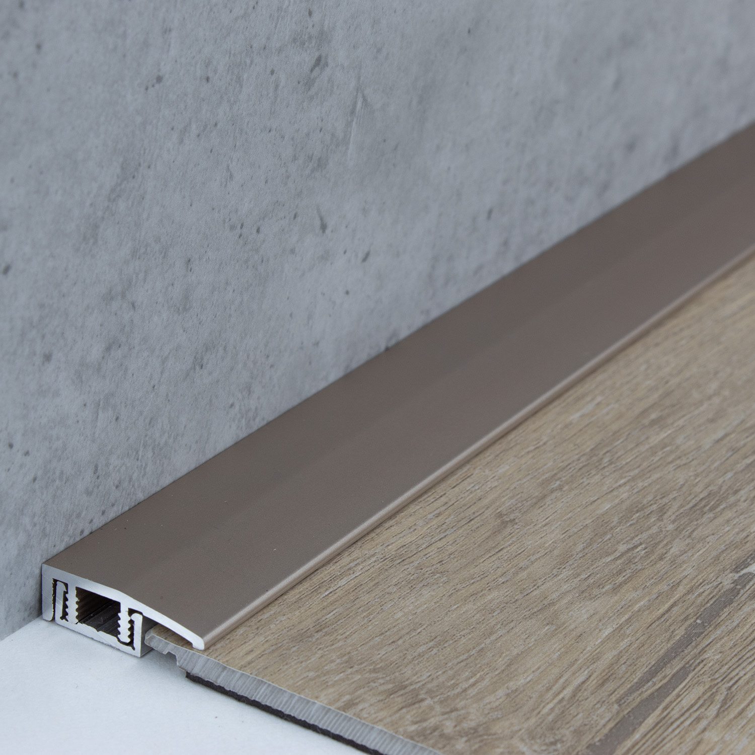 - COLOR: Bronce claro. Gracias a su aspecto sencillo y moderno, este color se integra armoniosamente en cualquier estilo de diseño de interiores, independientemente de si los suelos son oscuros o claros, o si las paredes son blancas o de colores. DISEÑO DE PERFIL ATRACTIVO: Sencillo, versátil y moderno. Este perfil de suelo es atemporal y un verdadero atractivo en cualquier habitación. APLICACIÓN: Los perfiles de borde protegen de forma ideal los cantos del suelo contra daños y proporcionan un acabado limpio y profesional. ACCESORIOS: Se incluyen los tornillos y tacos necesarios. SUPERFICIE: El perfil tiene una superficie lisa.