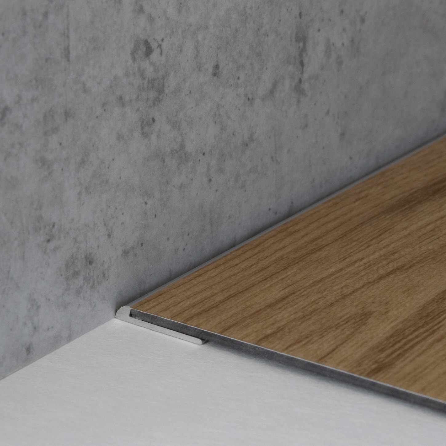 - COLOR: Plata. Gracias a su aspecto sencillo y moderno, este color se integra armoniosamente en cualquier estilo de diseño de interiores, independientemente de si los suelos son oscuros o claros, o si las paredes son blancas o de colores. DISEÑO DE PERFIL ATRACTIVO: Sencillo, versátil y moderno. Este perfil de suelo es atemporal y un verdadero atractivo en cualquier habitación. APLICACIÓN: Los perfiles de borde protegen de forma ideal los cantos del suelo contra daños y proporcionan un acabado limpio y profesional. ACCESORIOS: Se incluyen los tornillos y tacos necesarios. SUPERFICIE: El perfil tiene una superficie lisa.