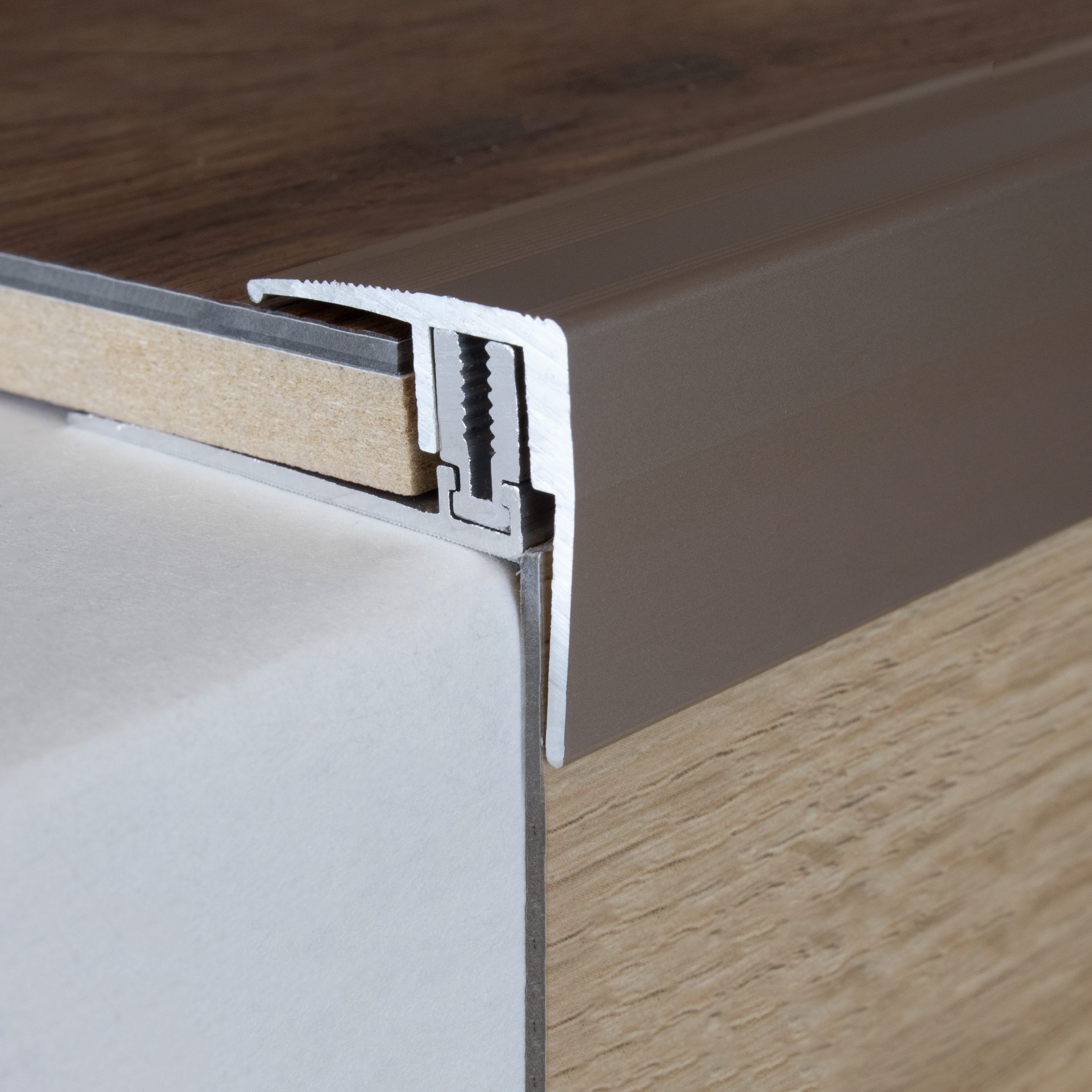 Perfiles de canto y ángulo para escaleras Auer Altona, altura 28,5 mm, ancho 44 mm, altura de canto 7 - 15,5 mm