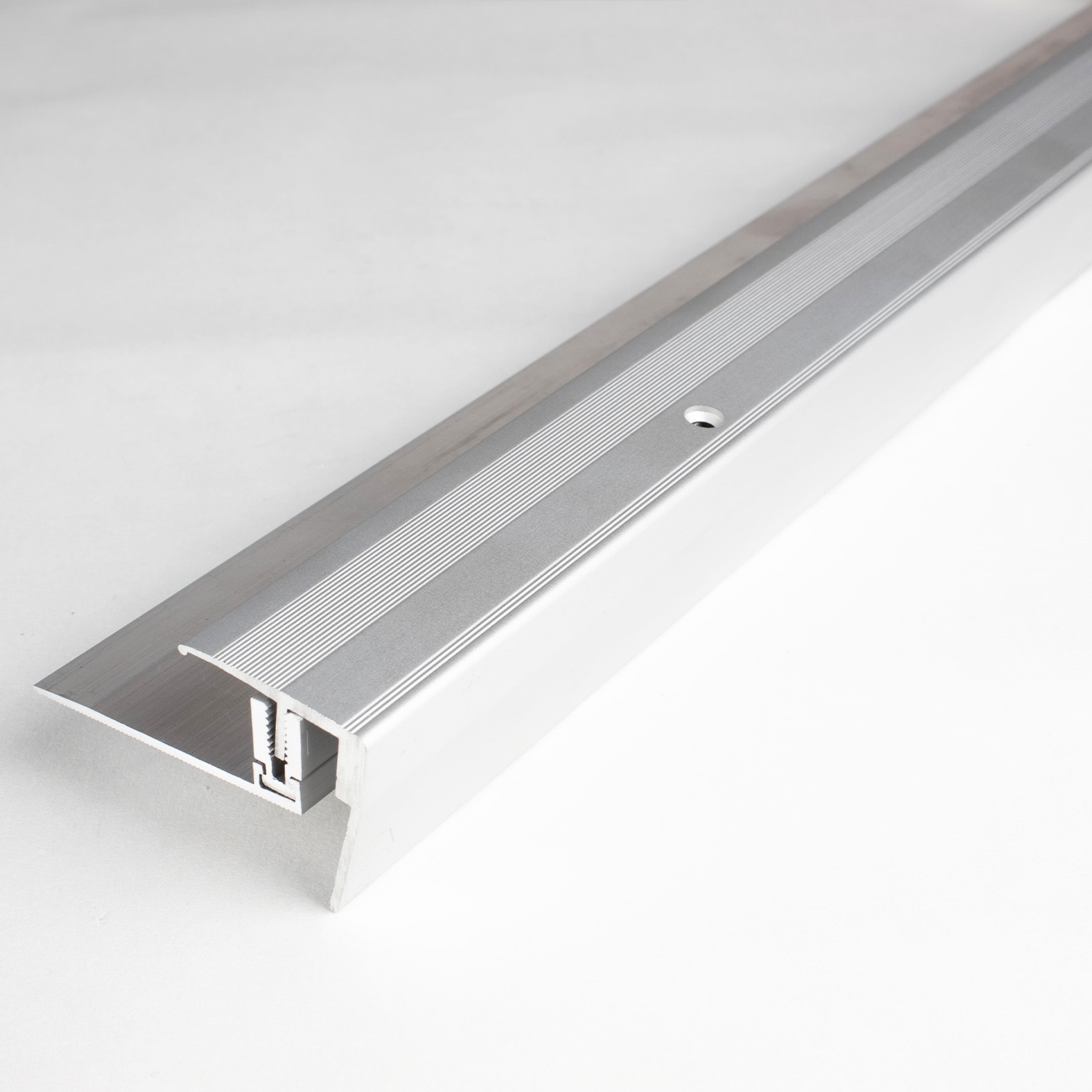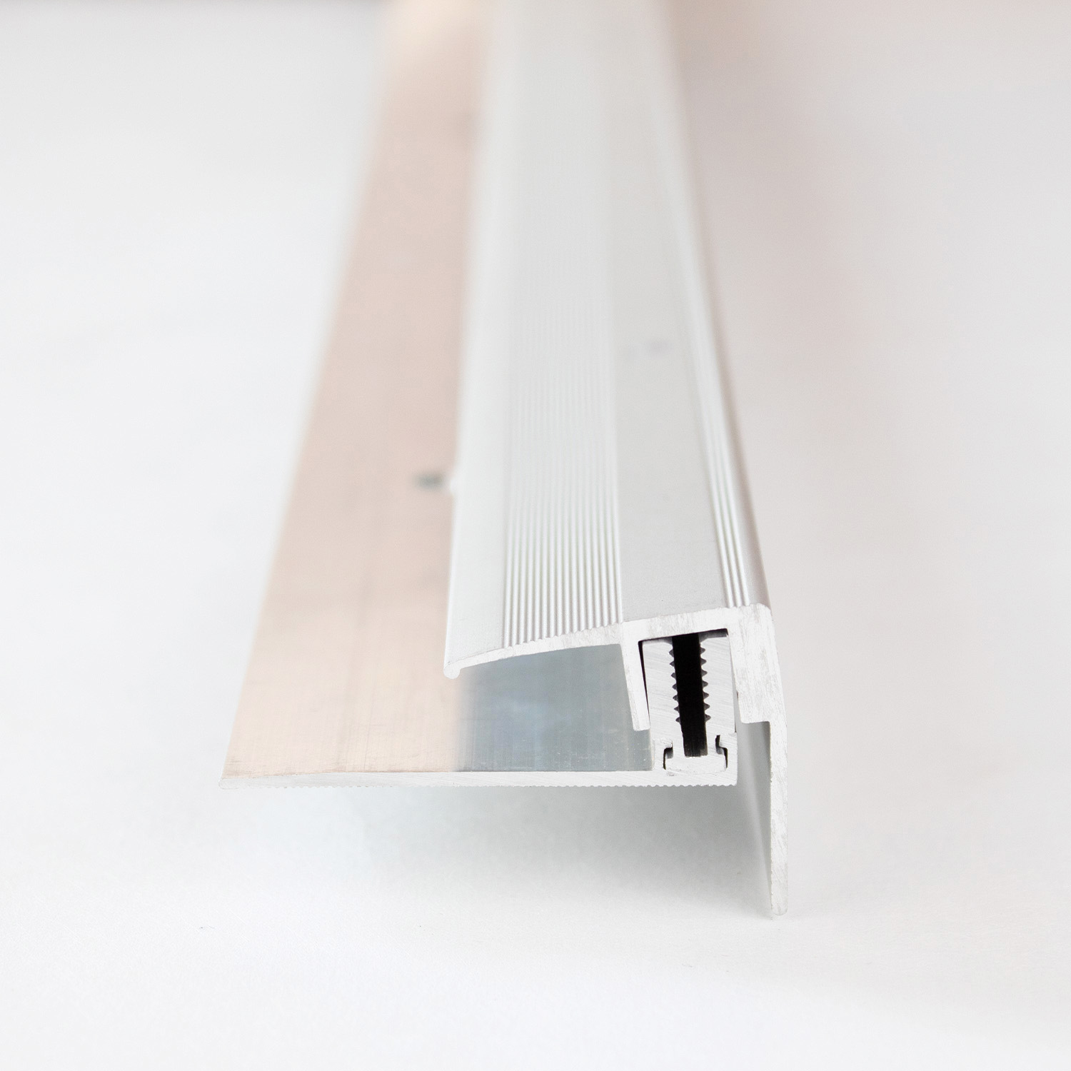 ¿Desea proteger sus escaleras y añadir un toque de elegancia al mismo tiempo? ¡Nuestros perfiles de borde de escalera son la solución perfecta! No solo ofrecen una protección eficaz contra el desgaste y los tropiezos, sino que también aportan un toque de estilo a su hogar. Con superficies antideslizantes y fácil limpieza, nuestros perfiles de borde de escalera le garantizan una movilidad segura y cómoda. Detalles del producto: Tamaño: El perfil angular de 44 x 7 - 15,5 x 900 mm tiene una altura de borde de 7 - 15,5 mm y crea un acabado limpio en el borde de la escalera. Material: La tira está fabricada en aluminio de alta calidad y se caracteriza por su robustez, resistencia a la corrosión y durabilidad. Color: Plata. Gracias a su aspecto sencillo y moderno, este color armoniza con cualquier estilo de decoración, ya sean suelos oscuros o claros, paredes blancas o de color. Protección contra el desgaste: Los perfiles de cantonera para escaleras ofrecen una protección eficaz para los bordes de sus escaleras. Evitan el desgaste y los arañazos que pueden producirse por el uso habitual.