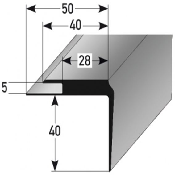 - TAMAÑO: El perfil angular de 50 x 45 x 2500 x 5 mm crea un acabado limpio en el borde de la escalera. El perfil tiene un canto de 5 mm.