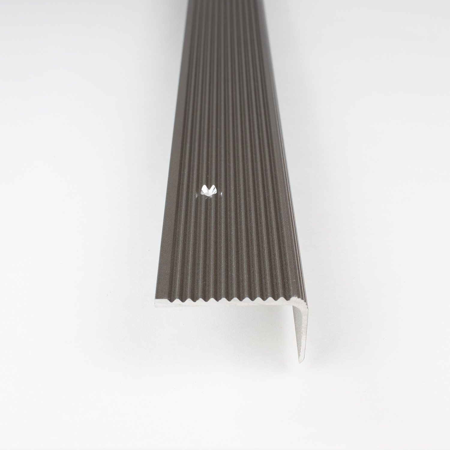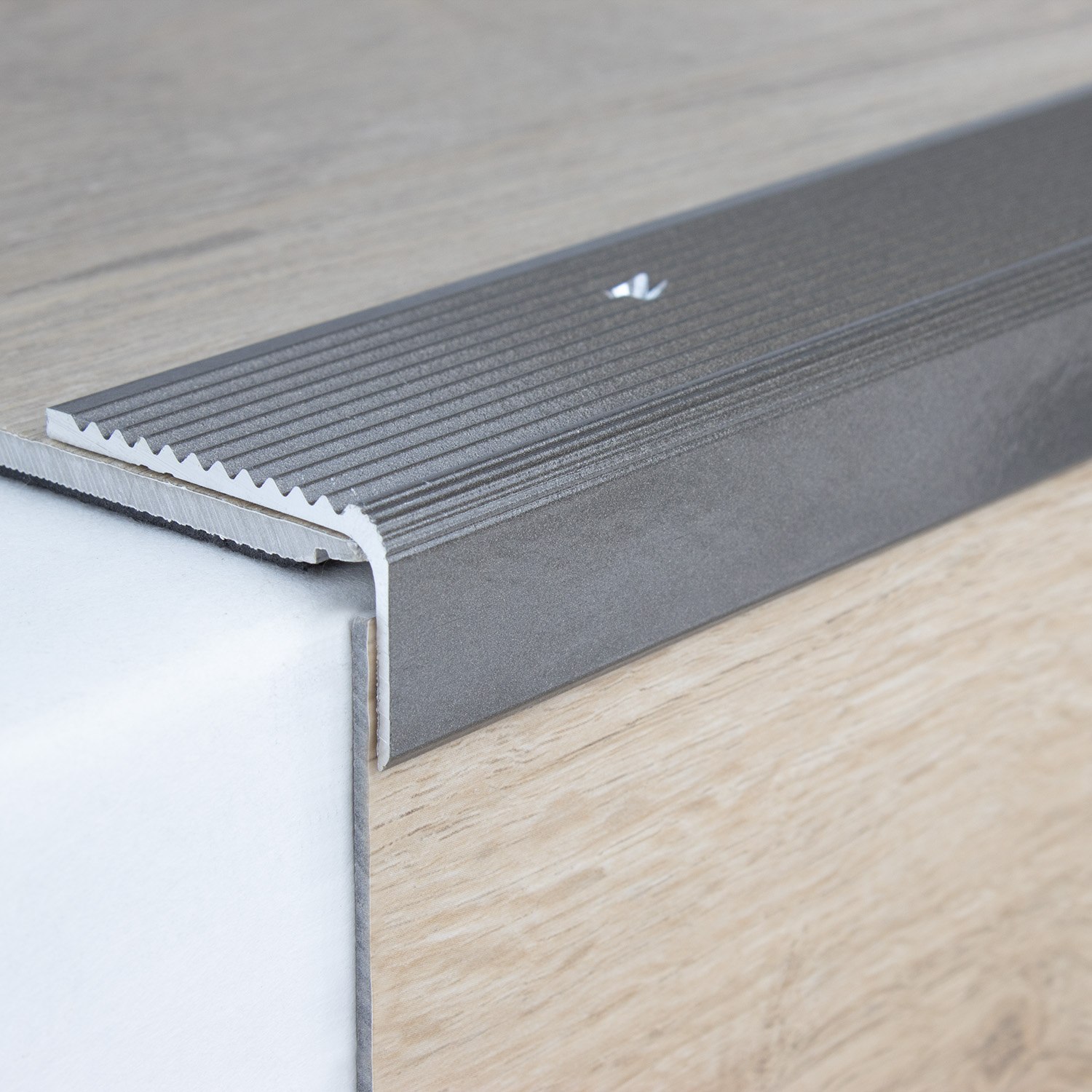 - TAMAÑO: El perfil angular de 40 x 23 x 1000 mm crea un acabado limpio en el borde de la escalera. El perfil tiene un grosor de 2,6 mm. MATERIAL: La tira está fabricada en aluminio de alta calidad y se caracteriza por su robustez, resistencia a la corrosión y durabilidad. COLOR: Gris oscuro. Gracias a su aspecto sencillo y moderno, este color armoniza con cualquier estilo de diseño de interiores, ya sean suelos oscuros o claros, paredes blancas o de color. PROTECCIÓN CONTRA EL DESGASTE: Los perfiles de cantonera ofrecen una protección eficaz para los bordes de sus escaleras. Evitan marcas de desgaste y arañazos que pueden producirse por el uso habitual. APLICACIÓN: Nuestros perfiles angulares son aptos no solo para edificios residenciales, sino también para edificios públicos, complejos comerciales y de oficinas. Se pueden utilizar en escalones de madera, hormigón o baldosas y se integran perfectamente en cualquier ambiente. Importante: Los perfiles de cantonera adhesivos no son aptos para edificios públicos. Para zonas de alto tránsito, recomendamos perfiles angulares de acero inoxidable.