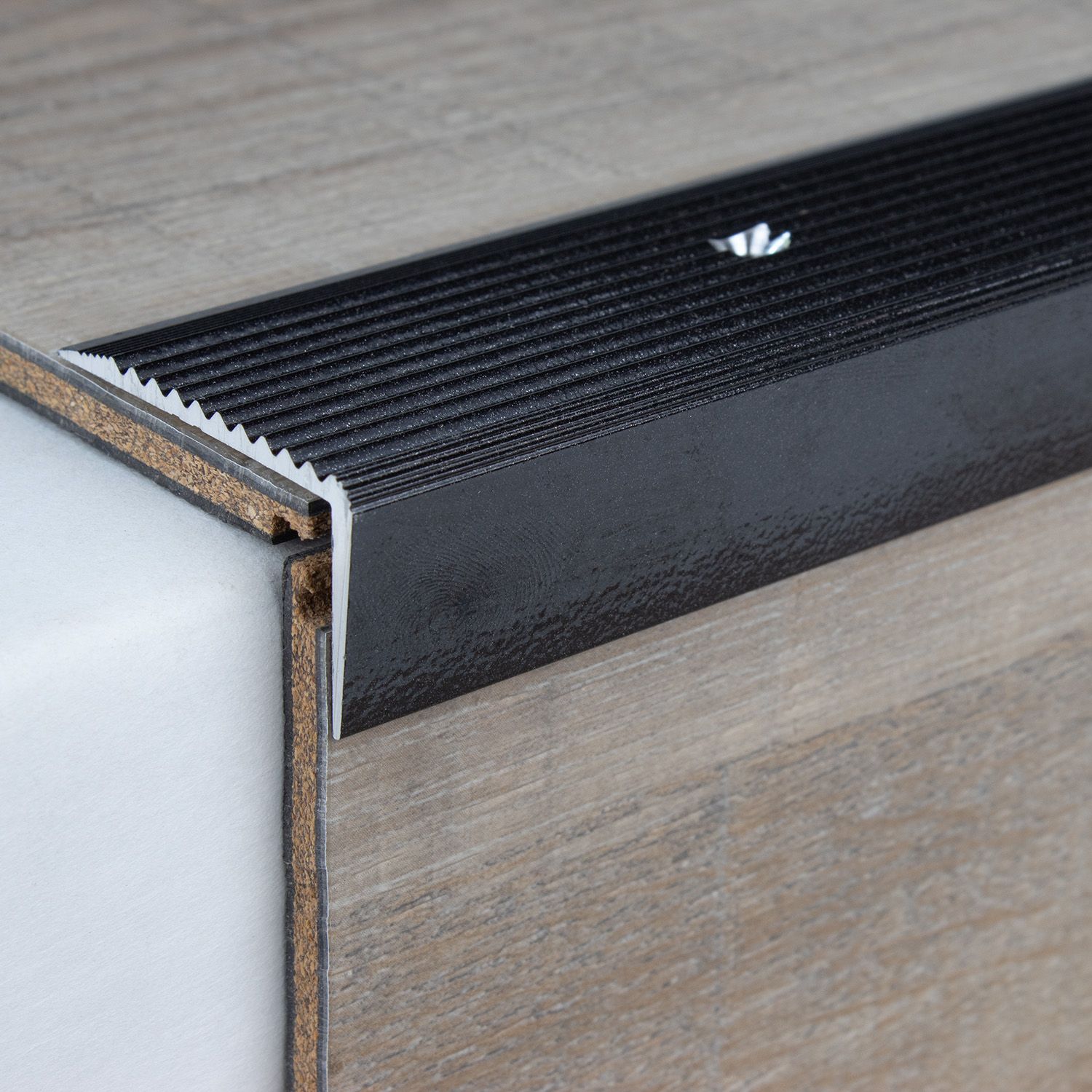 - TAMAÑO: El perfil angular de 40 x 20 x 1000 mm crea un acabado limpio en el borde de la escalera. El perfil tiene un grosor de 2,6 mm. MATERIAL: Fabricado en aluminio de alta calidad, se caracteriza por su robustez, resistencia a la corrosión y durabilidad. COLOR: Negro. Gracias a su aspecto sencillo y moderno, este color armoniza con cualquier estilo de diseño de interiores, ya sean suelos oscuros o claros, paredes blancas o de color. PROTECCIÓN CONTRA EL DESGASTE: Los perfiles de cantonera ofrecen una protección eficaz para los bordes de sus escaleras. Evitan marcas de desgaste y arañazos que pueden producirse por el uso habitual. APLICACIÓN: Nuestros perfiles angulares son aptos no solo para edificios residenciales, sino también para edificios públicos, complejos comerciales y de oficinas. Se pueden utilizar en escalones de madera, hormigón o baldosas y se integran perfectamente en cualquier ambiente. Importante: Los perfiles de cantonera adhesivos no son aptos para edificios públicos. Para zonas de alto tránsito, recomendamos perfiles angulares de acero inoxidable.