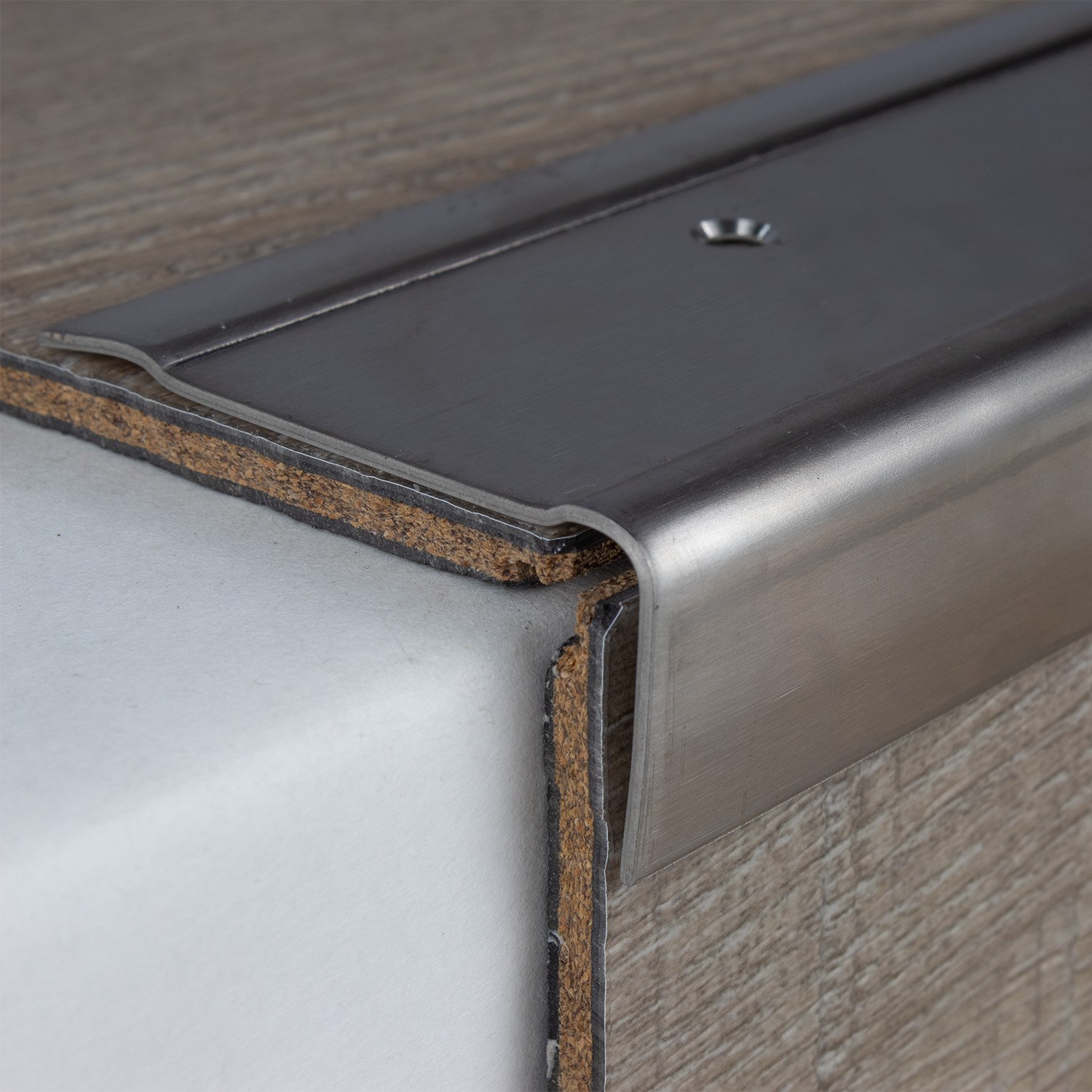 Perfiles de canto y ángulo para escaleras Auer Mirabella, ancho 63 mm, altura 25-45 mm, acero inoxidable