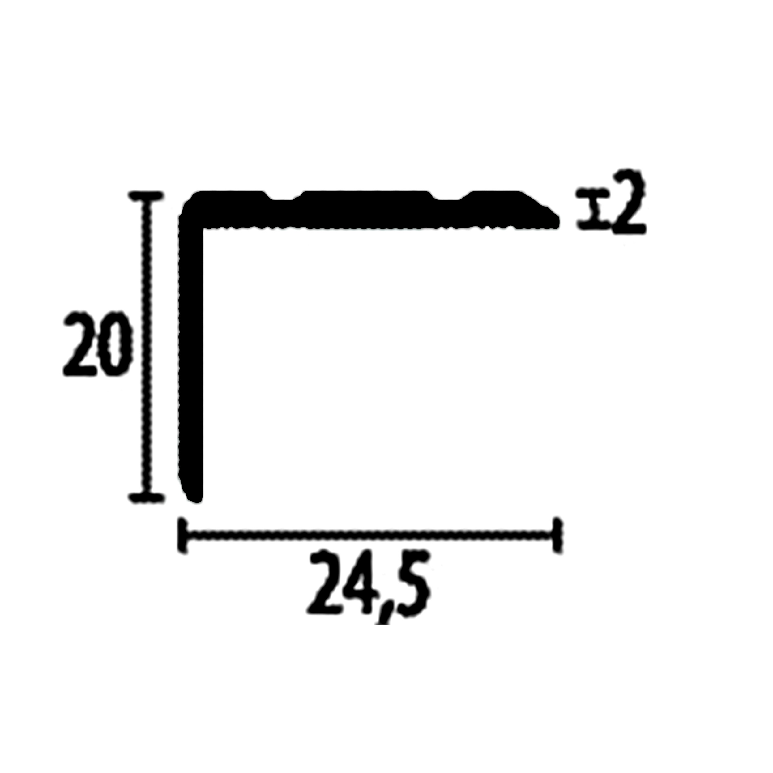 Perfiles de canto y ángulo para escaleras Küberit, 20 mm de alto x 24,5 mm de ancho, altura de canto de 0 a 17 mm, aluminio anodizado.