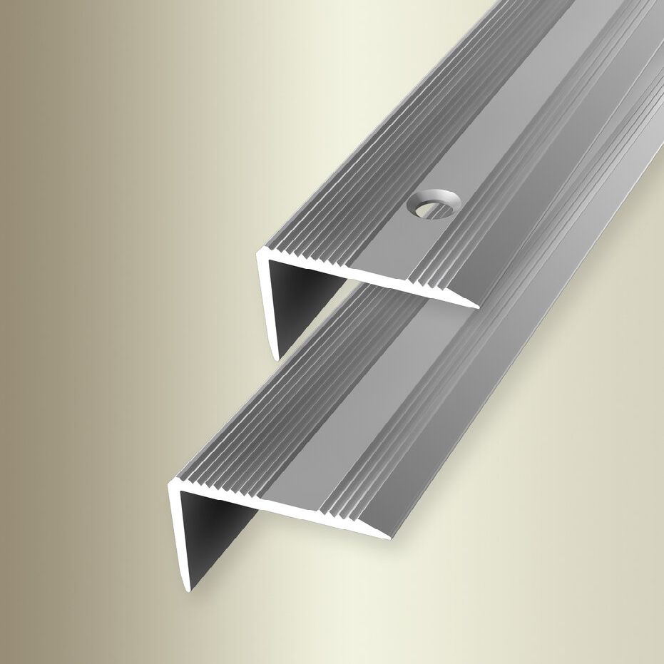 - TAMAÑO: El perfil angular de 30 x 20 x 2500 x 2 mm crea un acabado limpio en el borde de la escalera. El perfil tiene un grosor de 2 mm. MATERIAL: La tira está fabricada en aluminio de alta calidad y se caracteriza por su robustez, resistencia a la corrosión y durabilidad. COLOR: Plata. Gracias a su aspecto sencillo y moderno, este color se integra armoniosamente en cualquier estilo de diseño de interiores, ya sean suelos oscuros o claros, paredes blancas o de color. SUPERFICIE: La superficie acanalada garantiza un ascenso seguro por las escaleras.
