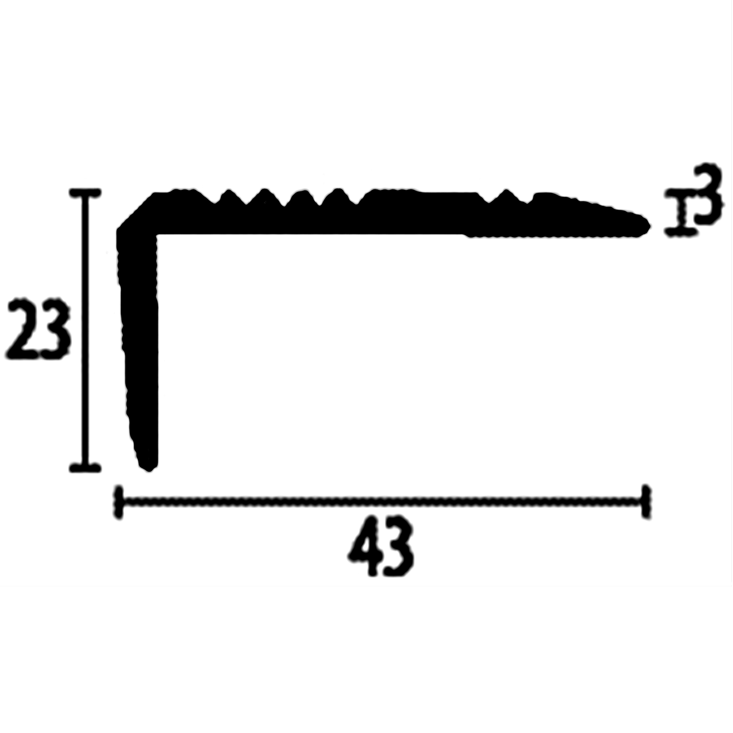 Perfiles de canto y ángulo para escaleras Küberit, 23 mm de alto x 43 mm de ancho, altura de canto de 0 a 20 mm, aluminio anodizado.