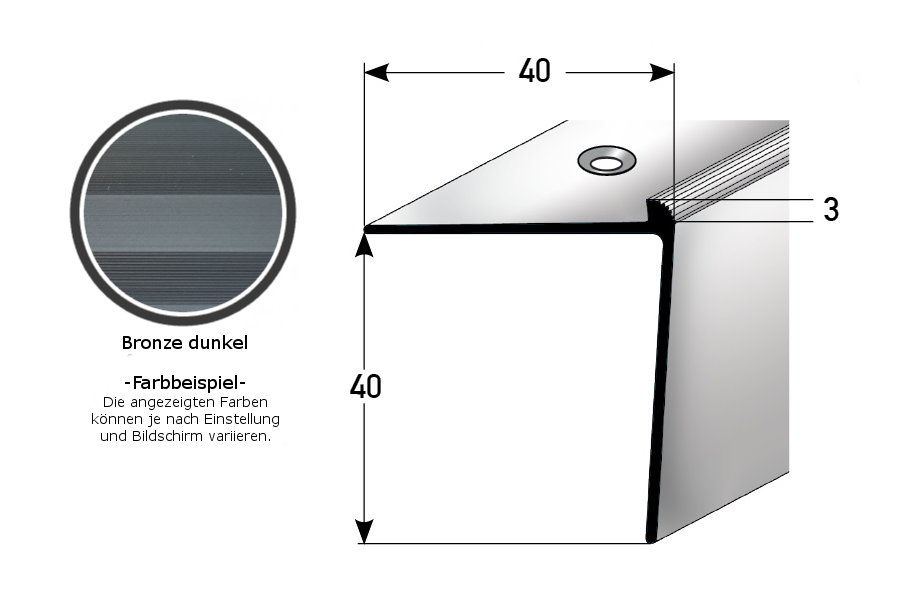 - TAMAÑO: El perfil angular de 40 x 3 x 1000 mm tiene una altura de borde de 3 mm y crea un acabado limpio en el borde de la escalera.