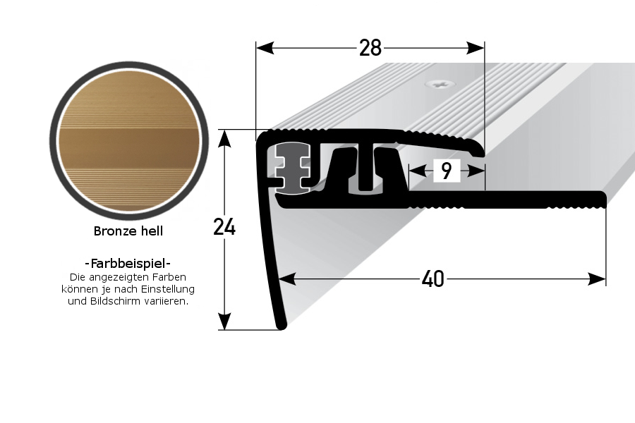 Perfiles de canto y ángulo para escaleras PROVISTON Lakeview Alto 24 mm Ancho 40 mm Altura del canto 4 - 7 mm