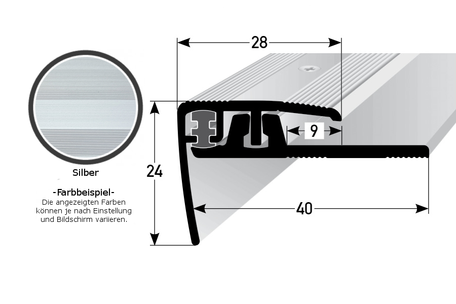 Perfiles de canto y ángulo para escaleras PROVISTON Lakeview Alto 24 mm Ancho 40 mm Altura del canto 4 - 7 mm