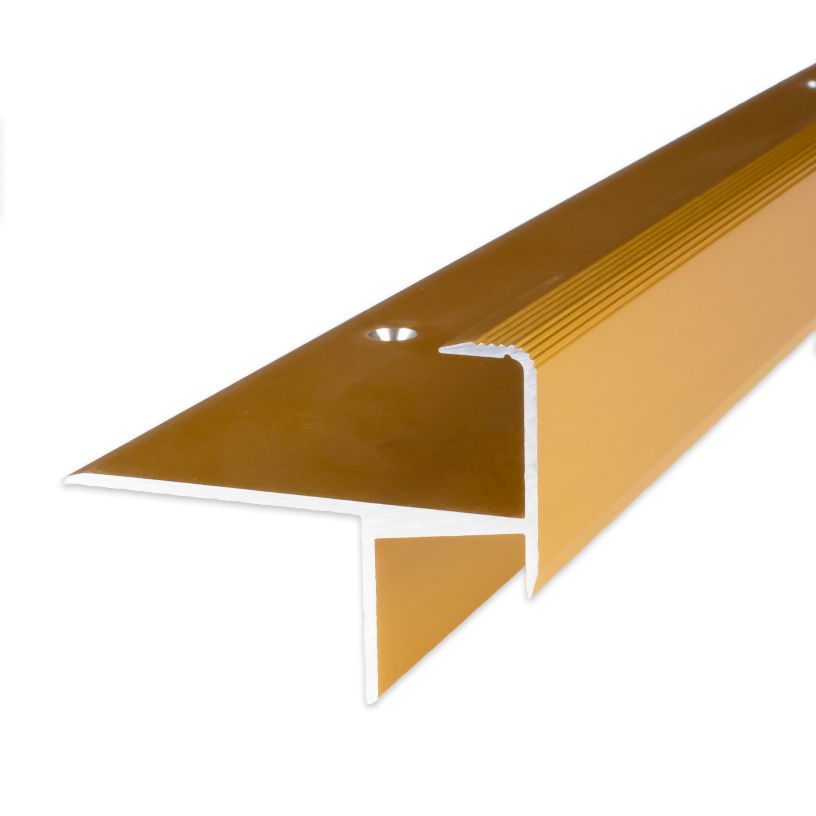 - TAMAÑO: El perfil angular con dimensiones 49,8 x 36,8 x 1000 x 15,3 x 1,5 mm crea un acabado limpio en el borde de la escalera. El perfil tiene un grosor de 1,5 mm. MATERIAL: La tira está fabricada en aluminio de alta calidad y se caracteriza por su robustez, resistencia a la corrosión y durabilidad. COLOR: Dorado. Gracias a su aspecto sencillo y moderno, este color se integra armoniosamente en cualquier estilo de diseño de interiores, ya sean suelos oscuros o claros, paredes blancas o de color. SUPERFICIE: La superficie acanalada garantiza un ascenso seguro por las escaleras.