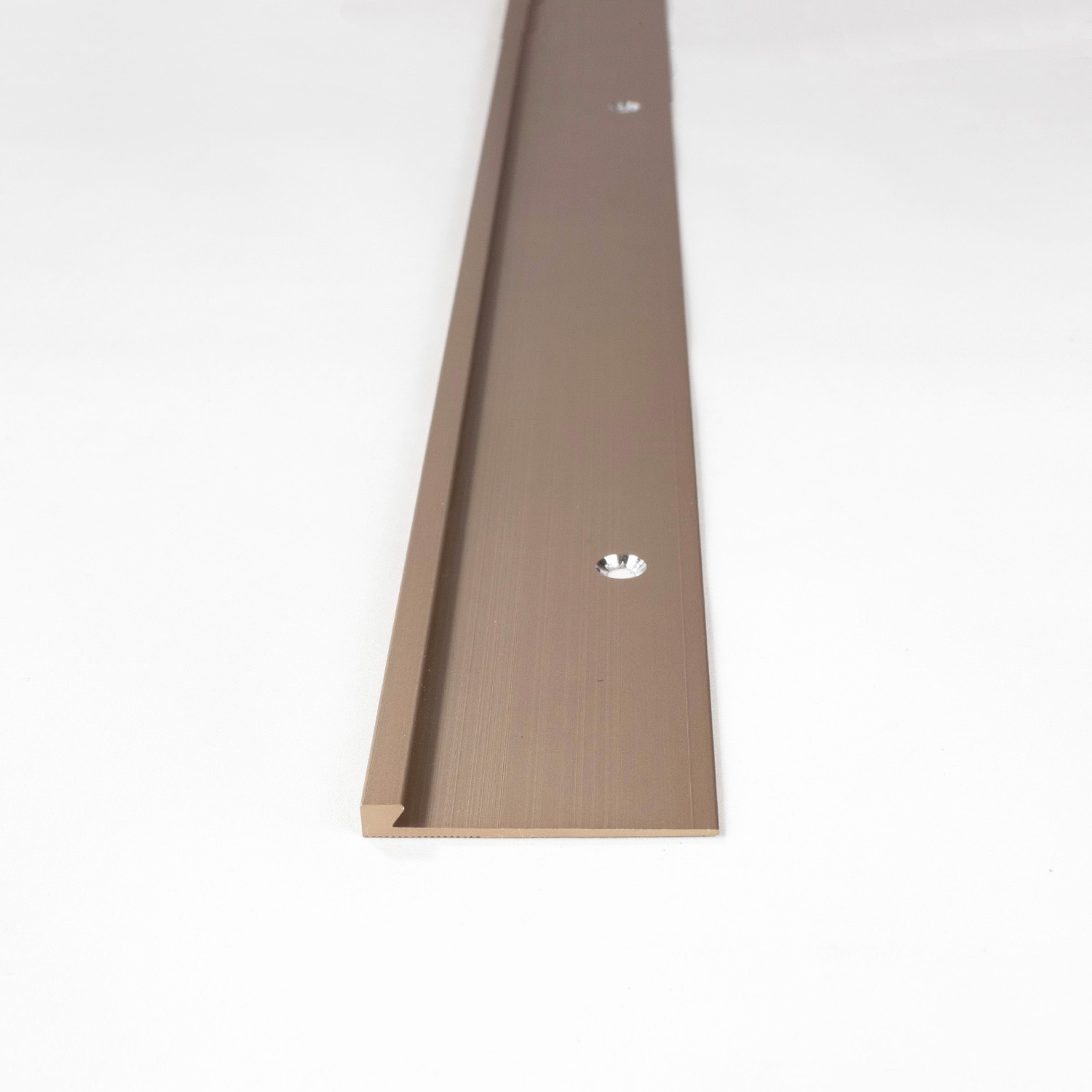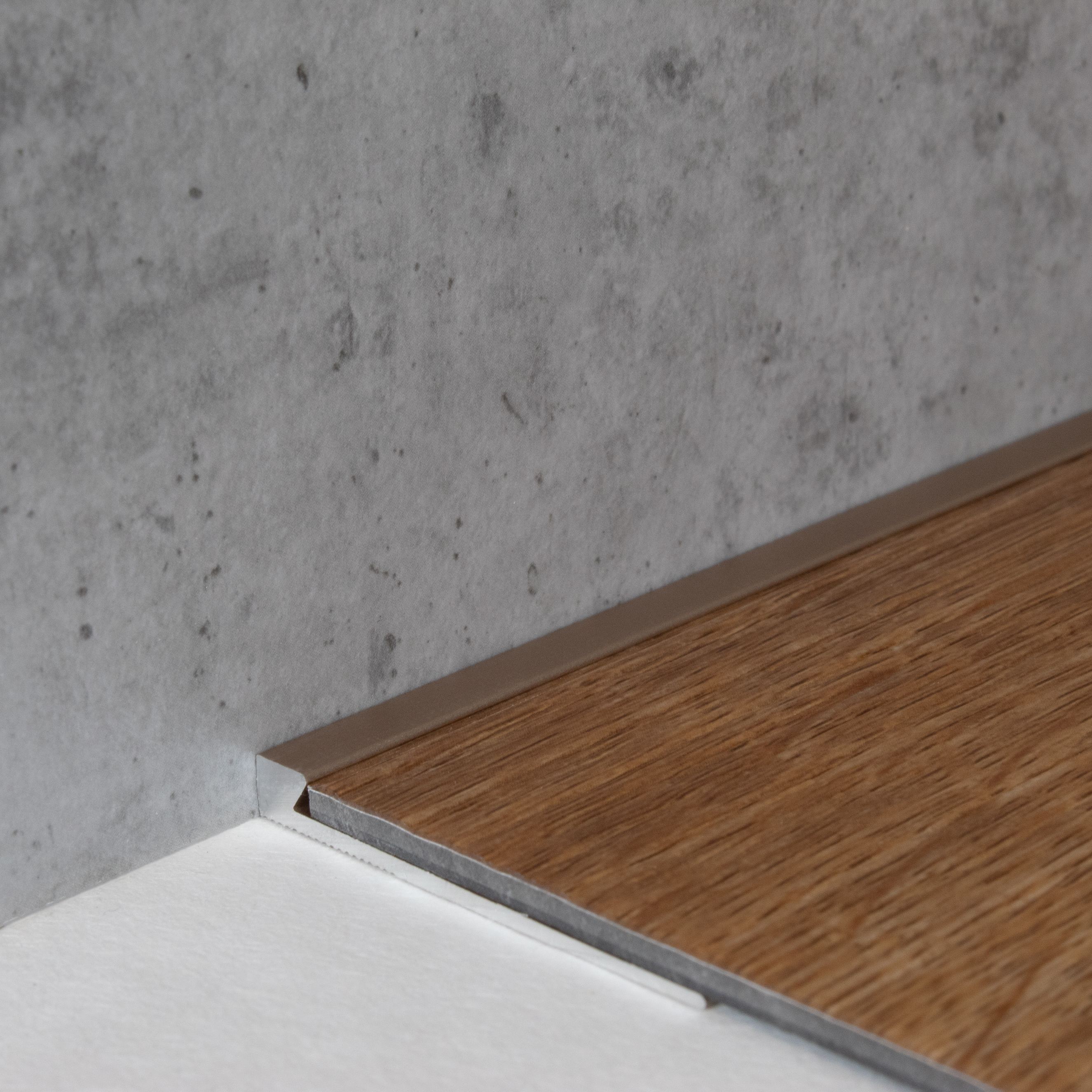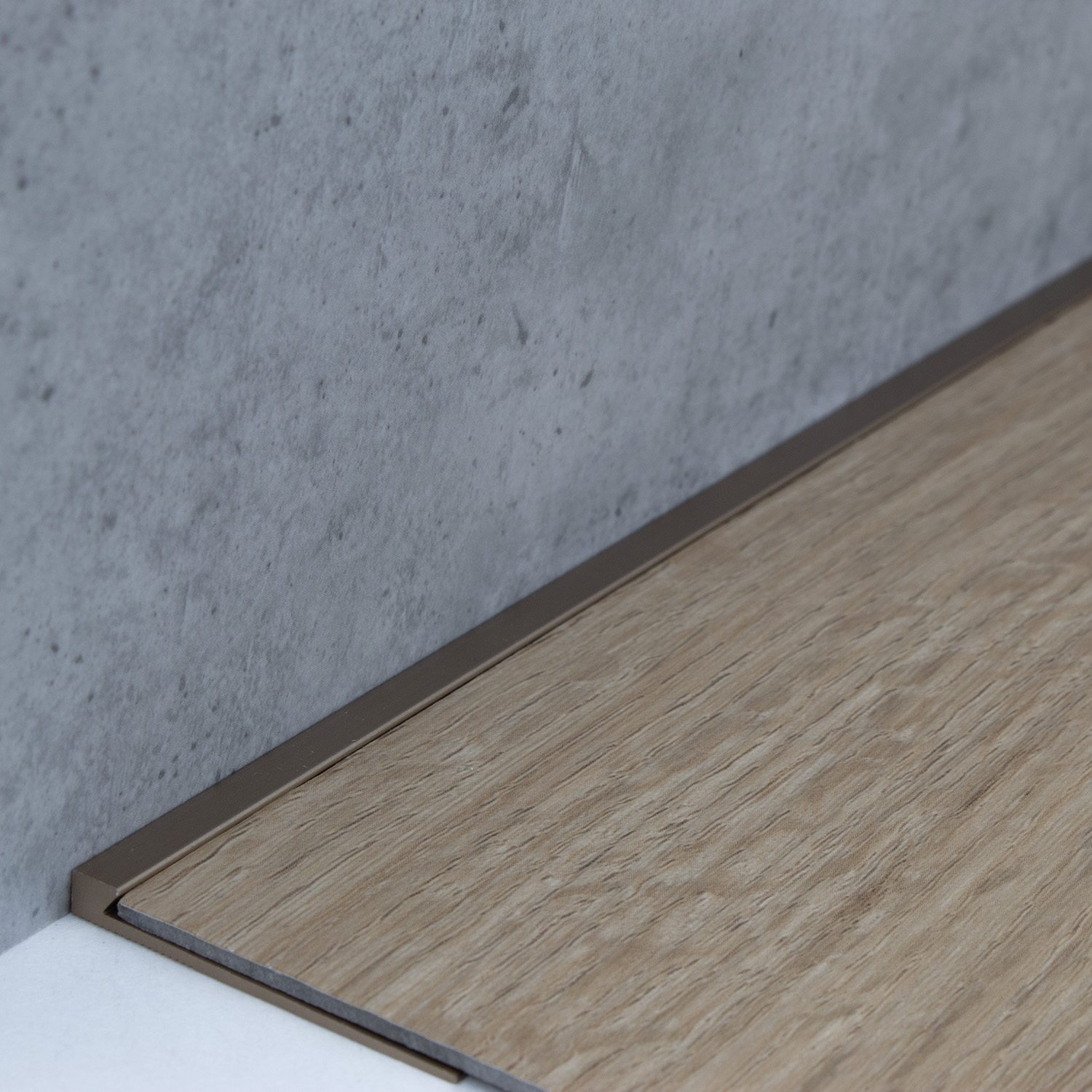 - COLOR: Bronce claro. Gracias a su aspecto sencillo y moderno, este color se integra armoniosamente en cualquier estilo de diseño de interiores, independientemente de si los suelos son oscuros o claros, o si las paredes son blancas o de colores. DISEÑO DE PERFIL ATRACTIVO: Sencillo, versátil y moderno. Este perfil de suelo es atemporal y un verdadero atractivo en cualquier habitación. APLICACIÓN: Los perfiles de borde protegen de forma ideal los cantos del suelo contra daños y proporcionan un acabado limpio y profesional. ACCESORIOS: Se incluyen los tornillos y tacos necesarios. SUPERFICIE: El perfil tiene una superficie lisa.