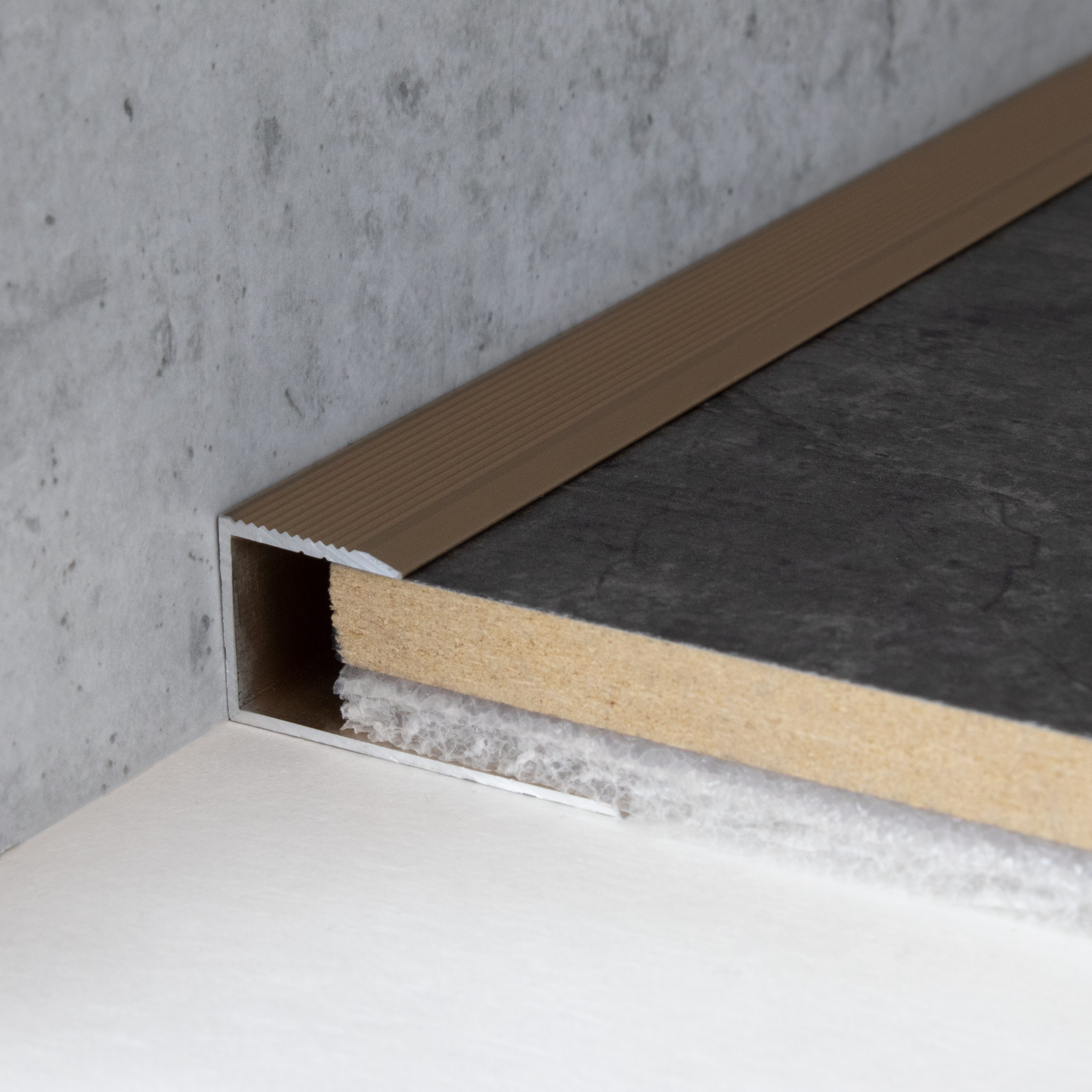 Nuestros perfiles de acabado destacan por su elegante diseño, su excelente fabricación y su capacidad para integrarse a la perfección con el diseño de su habitación y su suelo. Su instalación es sencilla y ofrecemos una amplia selección de diseños. Los perfiles de borde no solo crean un acabado visualmente atractivo, sino también transiciones limpias entre la pared y el suelo.