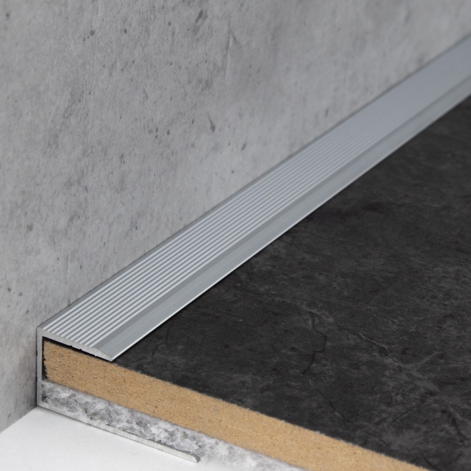 - COLOR: Plata. Gracias a su aspecto sencillo y moderno, este color se integra armoniosamente en cualquier estilo de diseño de interiores, independientemente de si los suelos son oscuros o claros, o si las paredes son blancas o de colores. SUPERFICIE: El perfil de borde tiene una textura superficial agradablemente suave. DISEÑO DE PERFIL APLICABLE: Sencillo, versátil y moderno. Este perfil de suelo es atemporal y un verdadero atractivo en cualquier habitación. APLICACIÓN: Los perfiles de borde protegen de forma ideal los cantos del suelo contra daños y proporcionan un acabado limpio y profesional. CONTENIDO DEL PAQUETE: Se incluyen los tornillos y tacos necesarios. INSTALACIÓN SENCILLA: La instalación de nuestros perfiles de borde es rápida y sencilla. No se requieren herramientas especiales ni técnicas de bricolaje complicadas. Los perfiles metálicos se pueden fijar fácilmente atornillando o pegando. Asegúrese de que la superficie esté nivelada y sea resistente. Para los perfiles de suelo autoadhesivos, la superficie debe estar seca, libre de polvo y grasa para garantizar una adhesión perfecta. En zonas de mucho tránsito, el perfil debe atornillarse y, además, encolarse. Para aumentar la capacidad de carga, recomendamos rellenar la cavidad entre el perfil metálico y el revestimiento del suelo con un material adhesivo. Aquí encontrará nuestras instrucciones de instalación para perfiles de suelo.