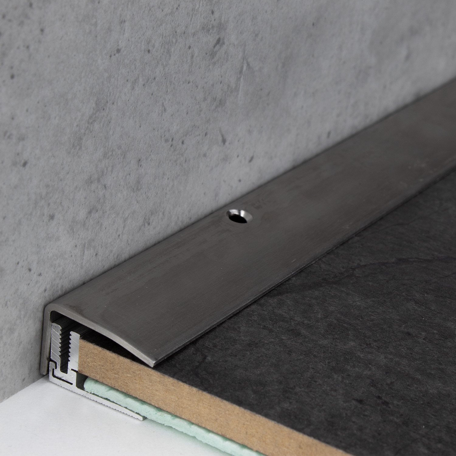 INSTALACIÓN SENCILLA: La instalación de nuestros perfiles de borde es rápida y sencilla. No se requieren herramientas especiales ni técnicas de bricolaje complicadas. Los perfiles metálicos se pueden fijar fácilmente atornillando o pegando. Asegúrese de que la superficie esté nivelada y sea resistente. Para los perfiles autoadhesivos, la superficie también debe estar seca, libre de polvo y grasa para lograr una adhesión óptima. En zonas de mucho tránsito, el perfil debe atornillarse y, además, encolarse. Para aumentar la capacidad de carga, recomendamos rellenar el espacio entre el perfil metálico y el revestimiento del suelo con un material adhesivo. Aquí encontrará nuestras instrucciones de instalación de perfiles para suelos.