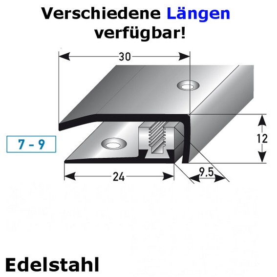 Perfiles de remate y canto Auer Davidson, 12 mm de alto, 30 mm de ancho, altura del canto de 7 a 9 mm, acero inoxidable