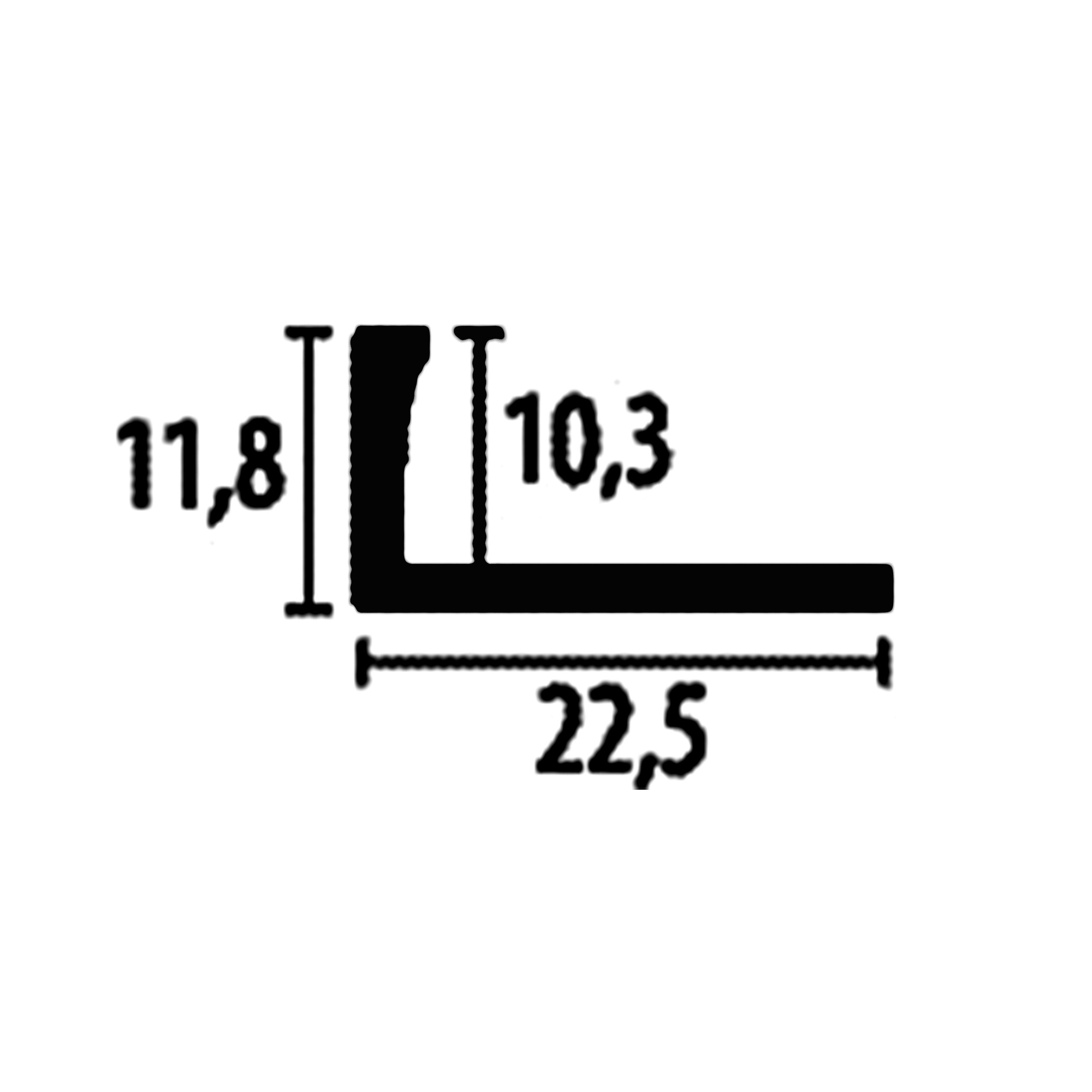 - DIMENSIONES: El perfil de acabado, con unas dimensiones de 22,5 x 11,8 x 2500 x 10,3 mm, tiene un borde de 10,3 mm.