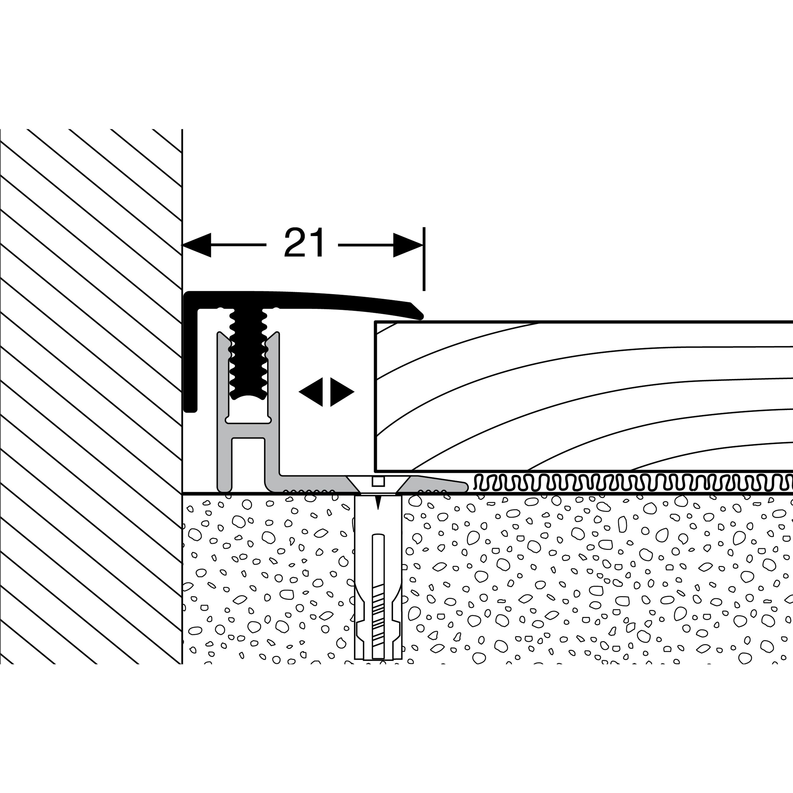 INSTALACIÓN SENCILLA: La instalación de nuestros perfiles de borde es rápida y sencilla. No se requieren herramientas especiales ni técnicas de bricolaje complicadas. Los perfiles metálicos se pueden fijar fácilmente atornillándolos o pegándolos. Asegúrese de que la superficie esté nivelada y sea resistente. Para los perfiles autoadhesivos, la superficie también debe estar seca, libre de polvo y grasa para lograr una adhesión óptima. En zonas de mucho tránsito, el perfil debe atornillarse y, además, pegarse. Para aumentar la capacidad de carga, recomendamos rellenar el espacio entre el perfil metálico y el revestimiento del suelo con un material adhesivo. Aquí encontrará nuestras instrucciones de instalación de perfiles para suelos.