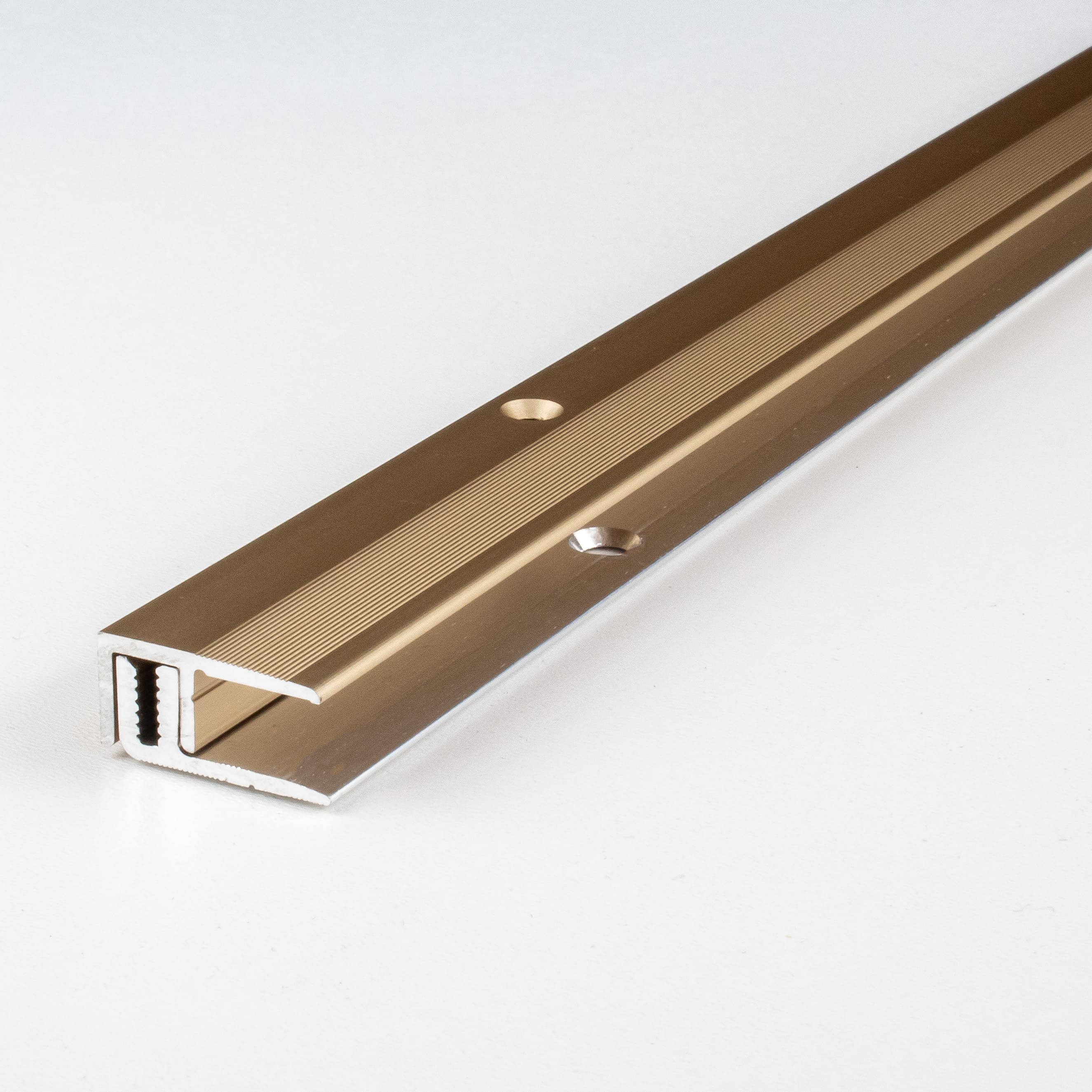Los perfiles metálicos se pueden fijar fácilmente atornillando o pegando. Asegúrese de que la superficie esté nivelada y sea resistente. Para los perfiles de suelo autoadhesivos, la superficie debe estar seca, libre de polvo y grasa para lograr una adhesión óptima.