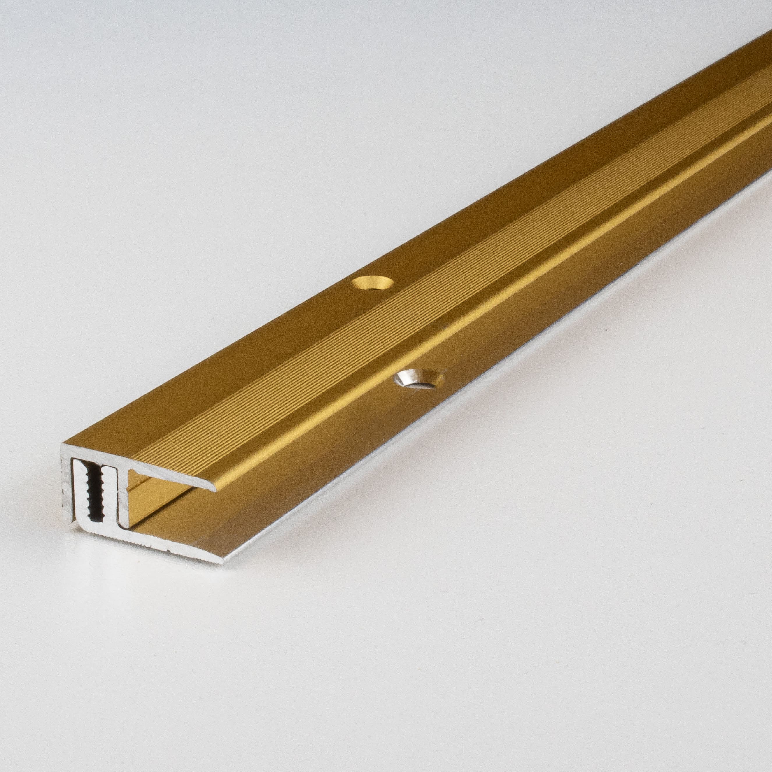 Los perfiles metálicos se pueden fijar fácilmente atornillando o pegando. Asegúrese de que la superficie esté nivelada y sea resistente. Para los perfiles de suelo autoadhesivos, la superficie debe estar seca, libre de polvo y grasa para lograr una adhesión óptima.