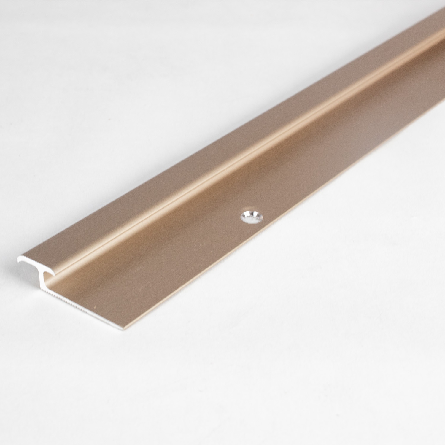 - COLOR: Bronce claro. Gracias a su aspecto sencillo y moderno, este color se integra armoniosamente en cualquier estilo de diseño de interiores, independientemente de si los suelos son oscuros o claros, o si las paredes son blancas o de colores. SUPERFICIE: El perfil de borde tiene una textura superficial agradablemente suave.