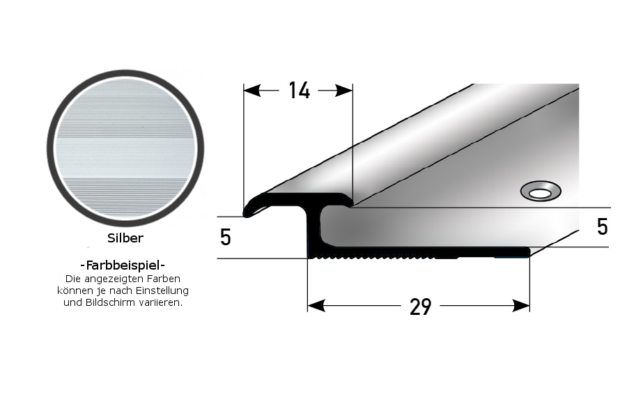- COLOR: Plata. Gracias a su aspecto sencillo y moderno, este color se integra armoniosamente en cualquier estilo de diseño de interiores, independientemente de si los suelos son oscuros o claros, o si las paredes son blancas o de colores. SUPERFICIE: El perfil de borde tiene una textura superficial agradablemente suave.