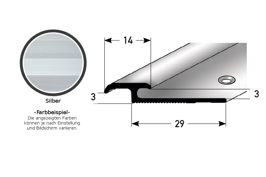 Perfiles de remate y canto PROVISTON Leicester, ancho 29 mm, altura del canto 3-7 mm, aluminio