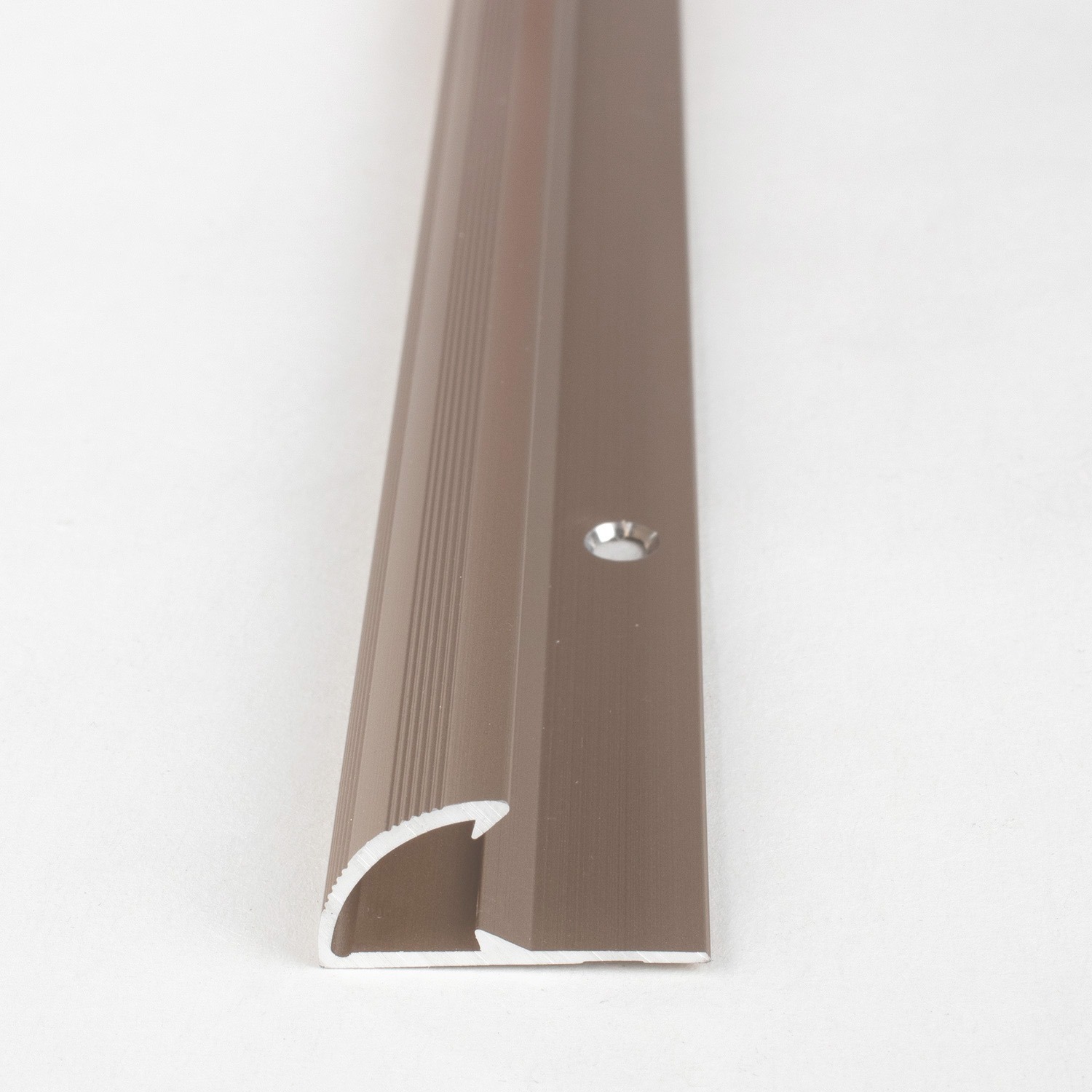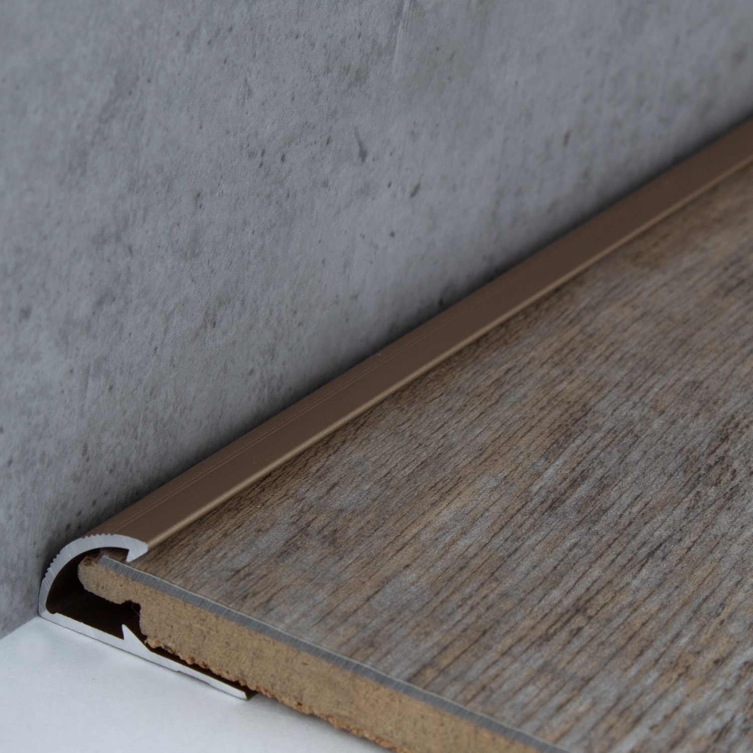 - COLOR: Bronce claro. Gracias a su aspecto sencillo y moderno, este color se integra armoniosamente en cualquier estilo de diseño de interiores, independientemente de si los suelos son oscuros o claros, o si las paredes son blancas o de colores. DISEÑO DE PERFIL ATRACTIVO: Sencillo, versátil y moderno. Este perfil de suelo es atemporal y un verdadero atractivo en cualquier habitación. APLICACIÓN: Los perfiles de borde protegen de forma ideal los cantos del suelo contra daños y proporcionan un acabado limpio y profesional. ACCESORIOS: Se incluyen los tornillos y tacos necesarios. SUPERFICIE: El perfil tiene una superficie ranurada.