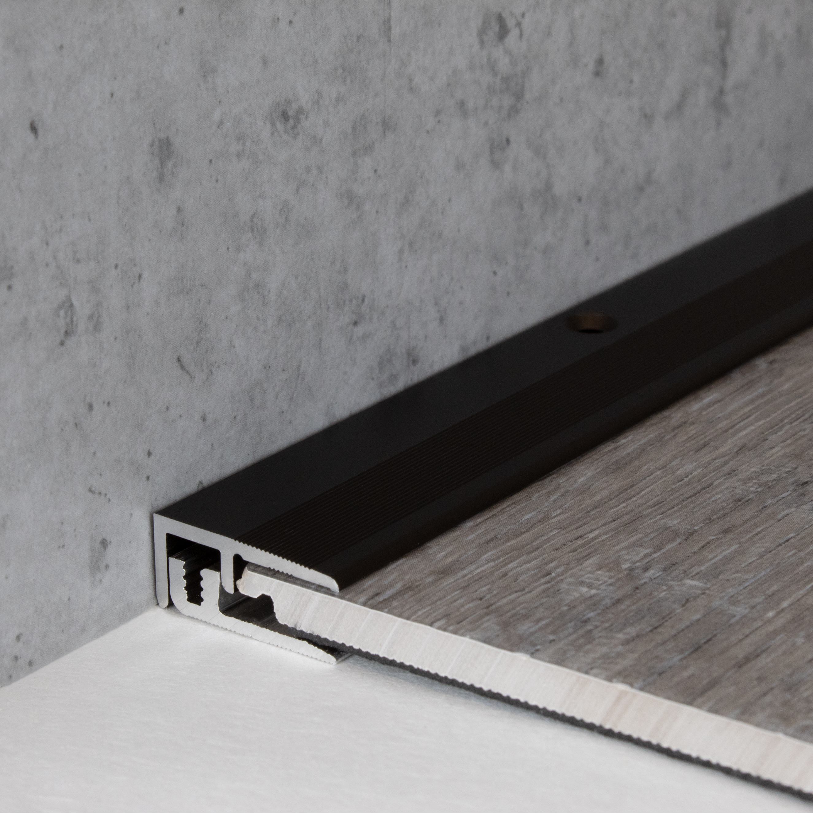 INSTALACIÓN SENCILLA: La instalación de nuestros perfiles de borde es rápida y sencilla. No se requieren herramientas especiales ni técnicas de bricolaje complicadas. Los perfiles metálicos se pueden fijar fácilmente atornillando o pegando. Asegúrese de que la superficie esté nivelada y sea resistente. Para los perfiles autoadhesivos, la superficie también debe estar seca, libre de polvo y grasa para lograr una adhesión óptima. En zonas de mucho tránsito, el perfil debe atornillarse y, además, encolarse. Para aumentar la capacidad de carga, recomendamos rellenar el espacio entre el perfil metálico y el revestimiento del suelo con un material adhesivo. Aquí encontrará nuestras instrucciones de instalación de perfiles para suelos.