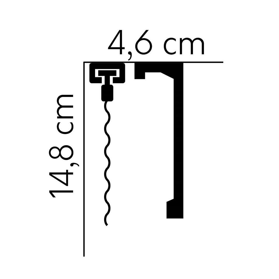 Esta moldura de cornisa es un perfil moderno y de diseño sencillo que se puede instalar en cualquier habitación. Su diseño discreto y atemporal no resulta intrusivo y se integra armoniosamente en cualquier interior.